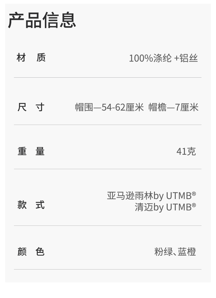 泰国UTMB®限定版可弯折软帽檐太阳帽男女同款户外跑步运动遮阳防晒吸汗速干透气