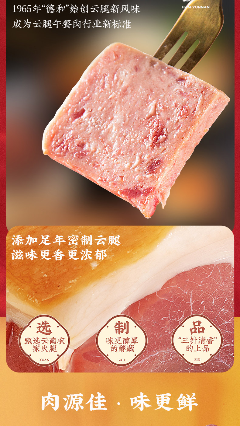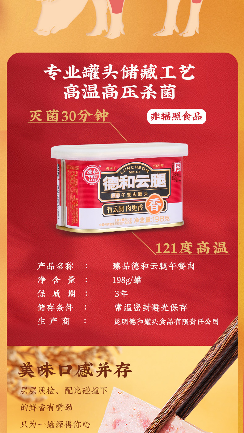 【超值囤货】德和 臻品云腿午餐肉罐头198g*3罐 #午餐肉
