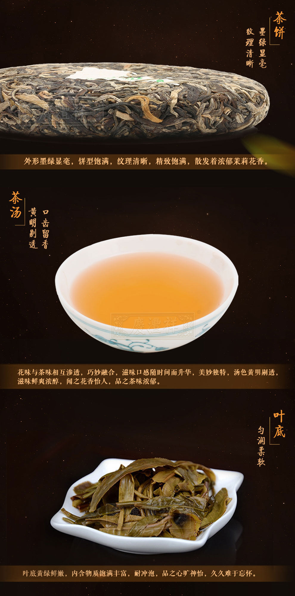 七彩云南茶叶普洱茶生茶饼庆沣祥柑甜五子饼茉莉味普洱生茶铁罐装茉莉青饼500g