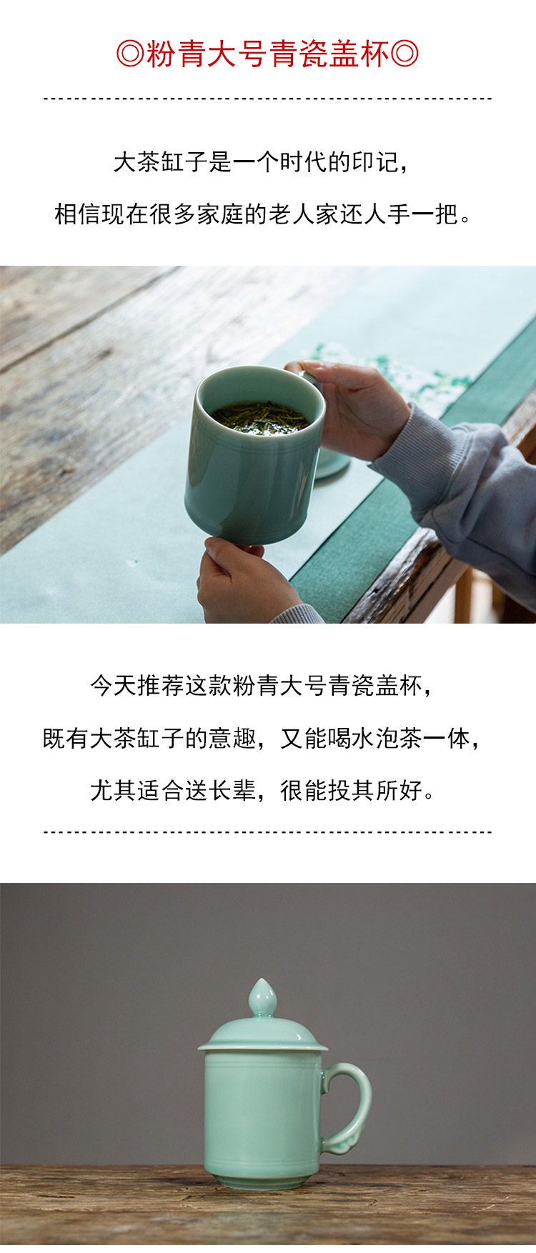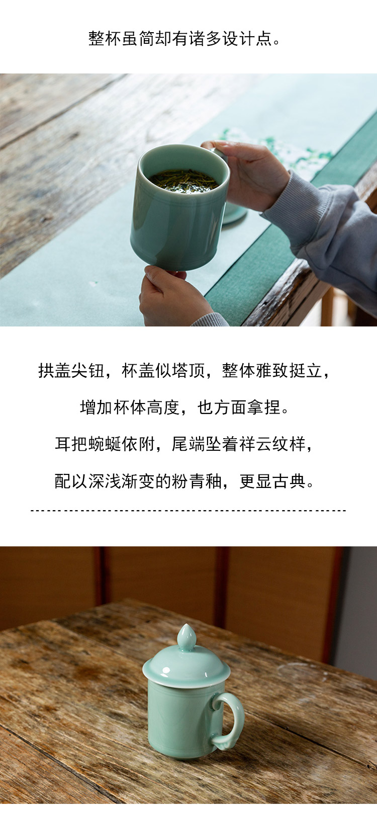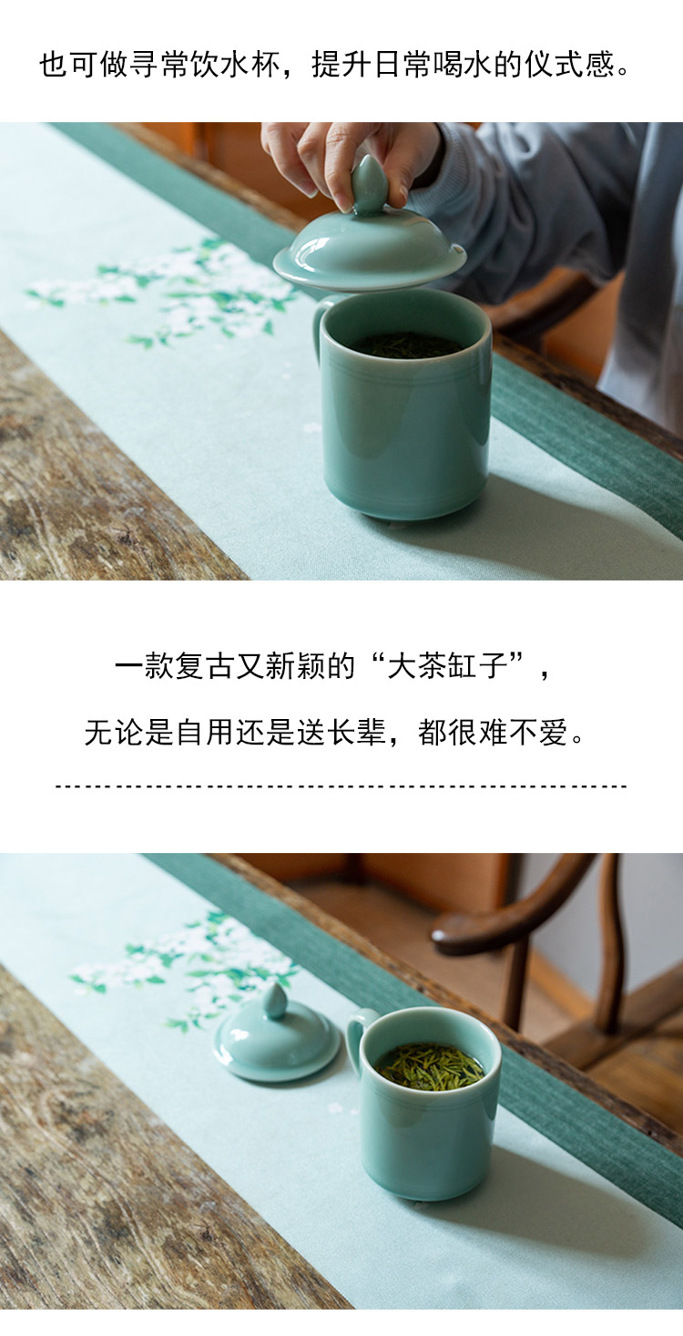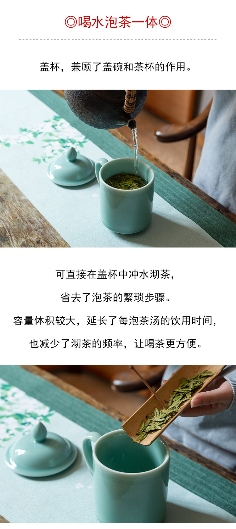 茶香记 粉青大号青瓷盖杯380ml主人杯莹润清雅实用精简茶杯一体式