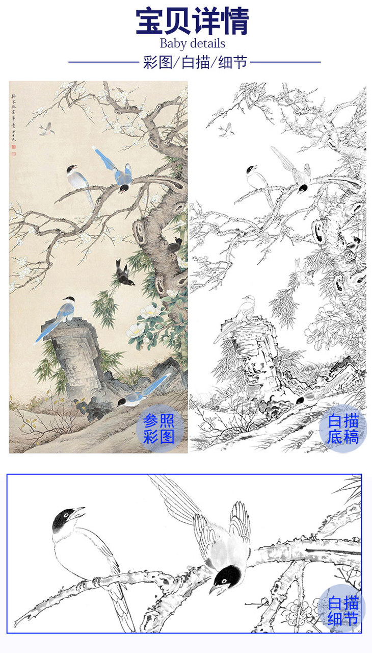 工笔画白描底稿于非闇花鸟《燕子花开蛱蝶来》临摹勾线高清打印稿FA70