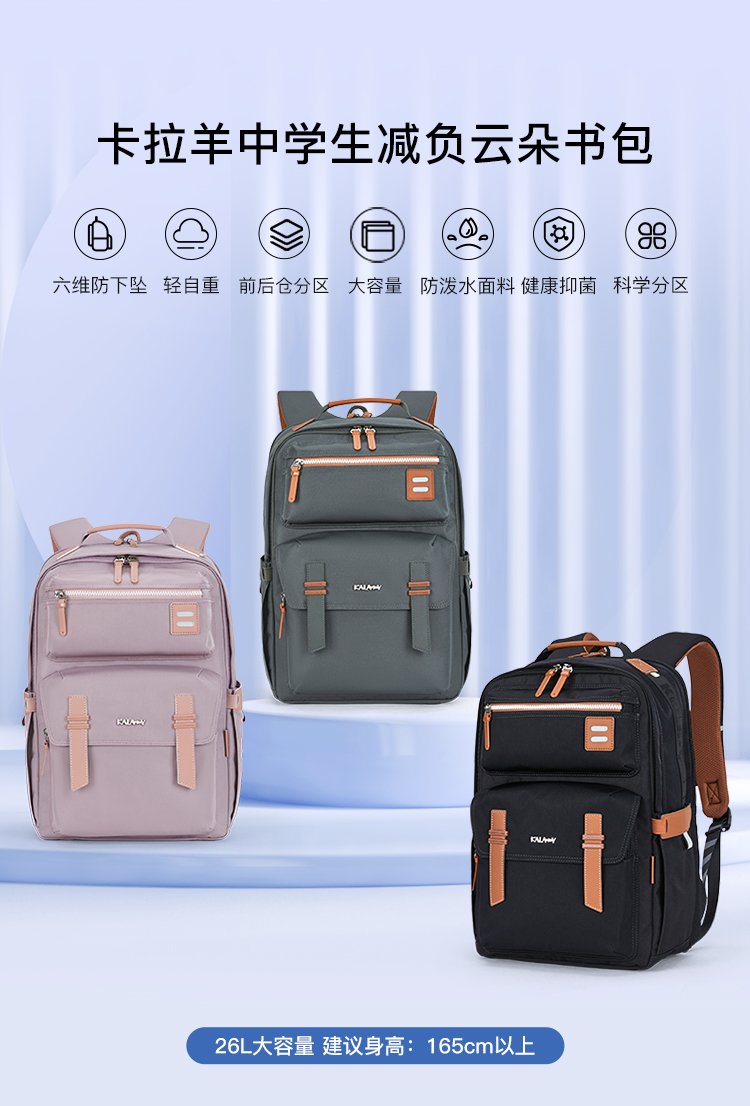 【云朵书包2.0PLUS版】卡拉羊中学生六维防下坠26L云朵书包 万物生 CX5000L