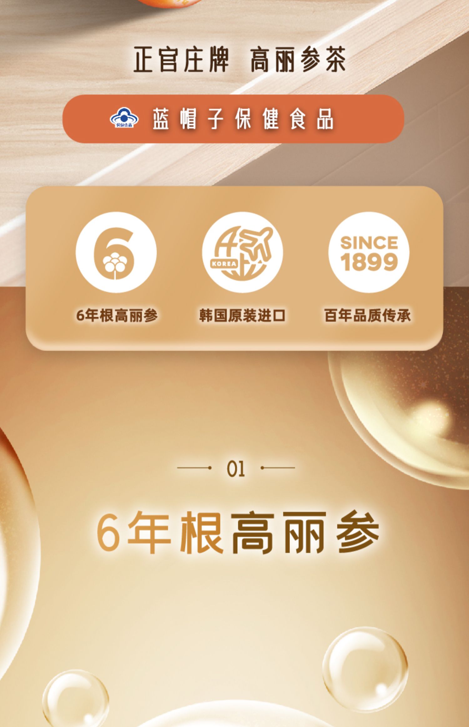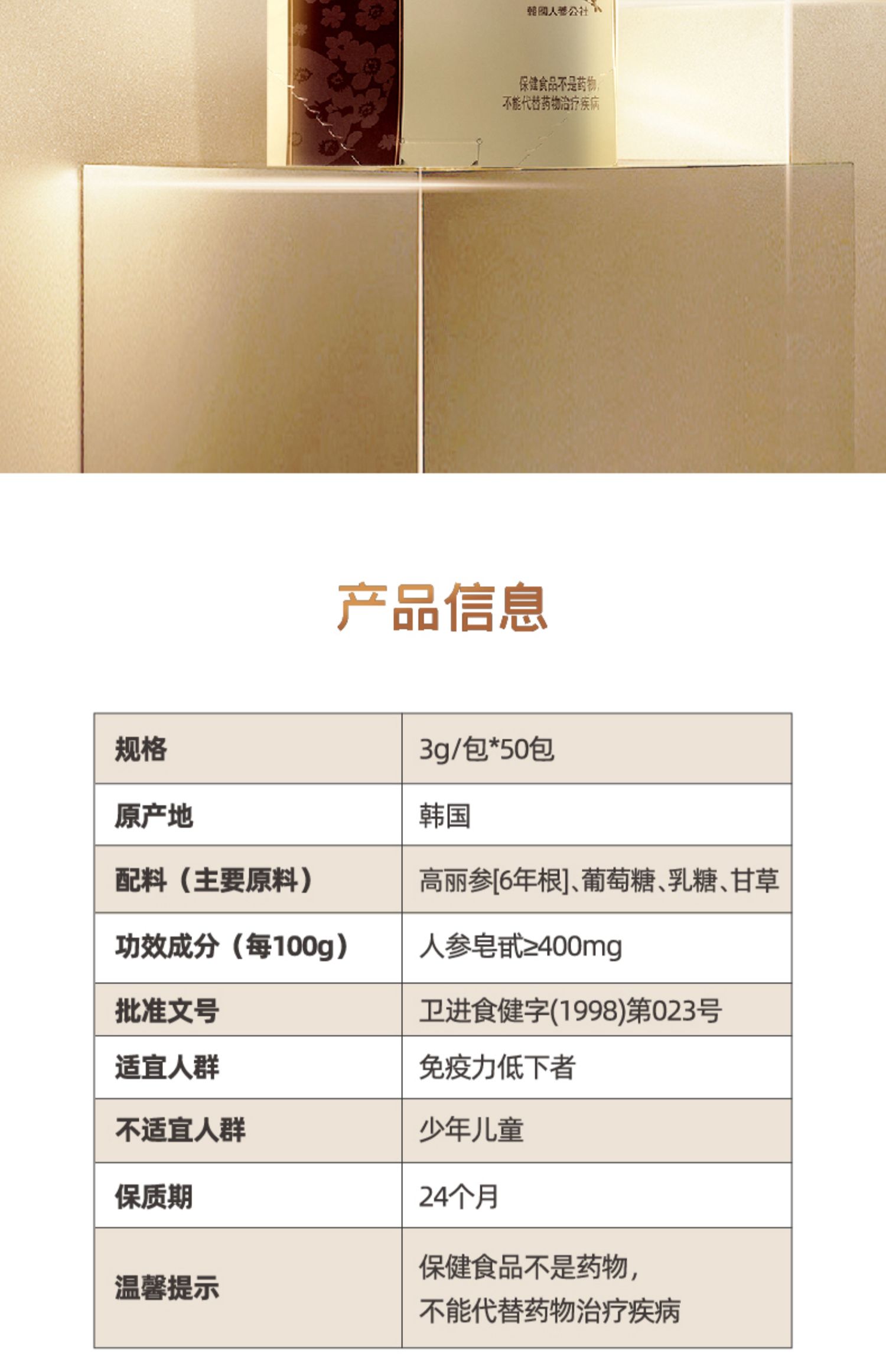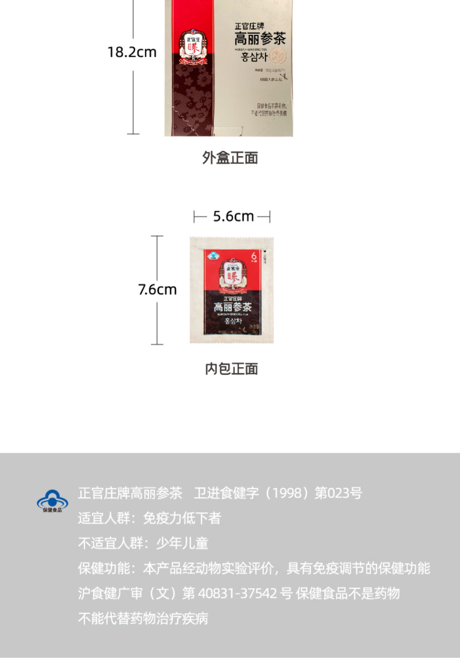 3g*50包正官庄牌高丽参茶 养生茶红参人参皂苷免疫调节