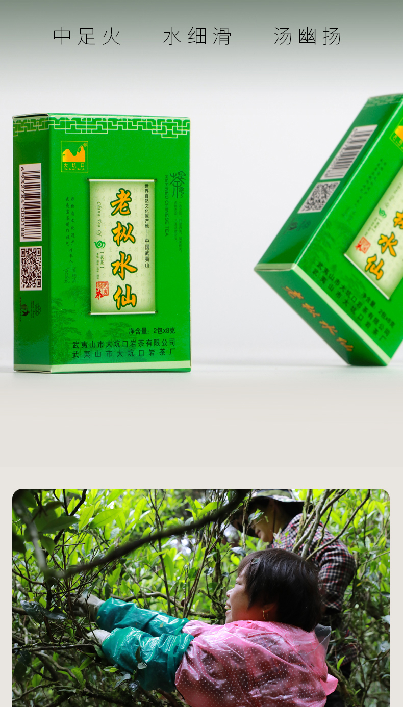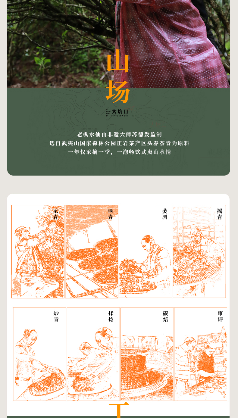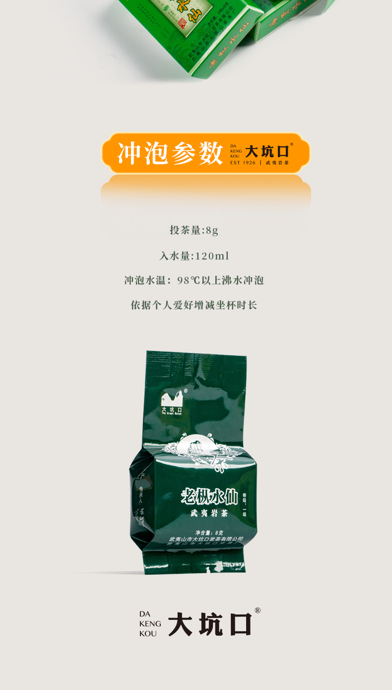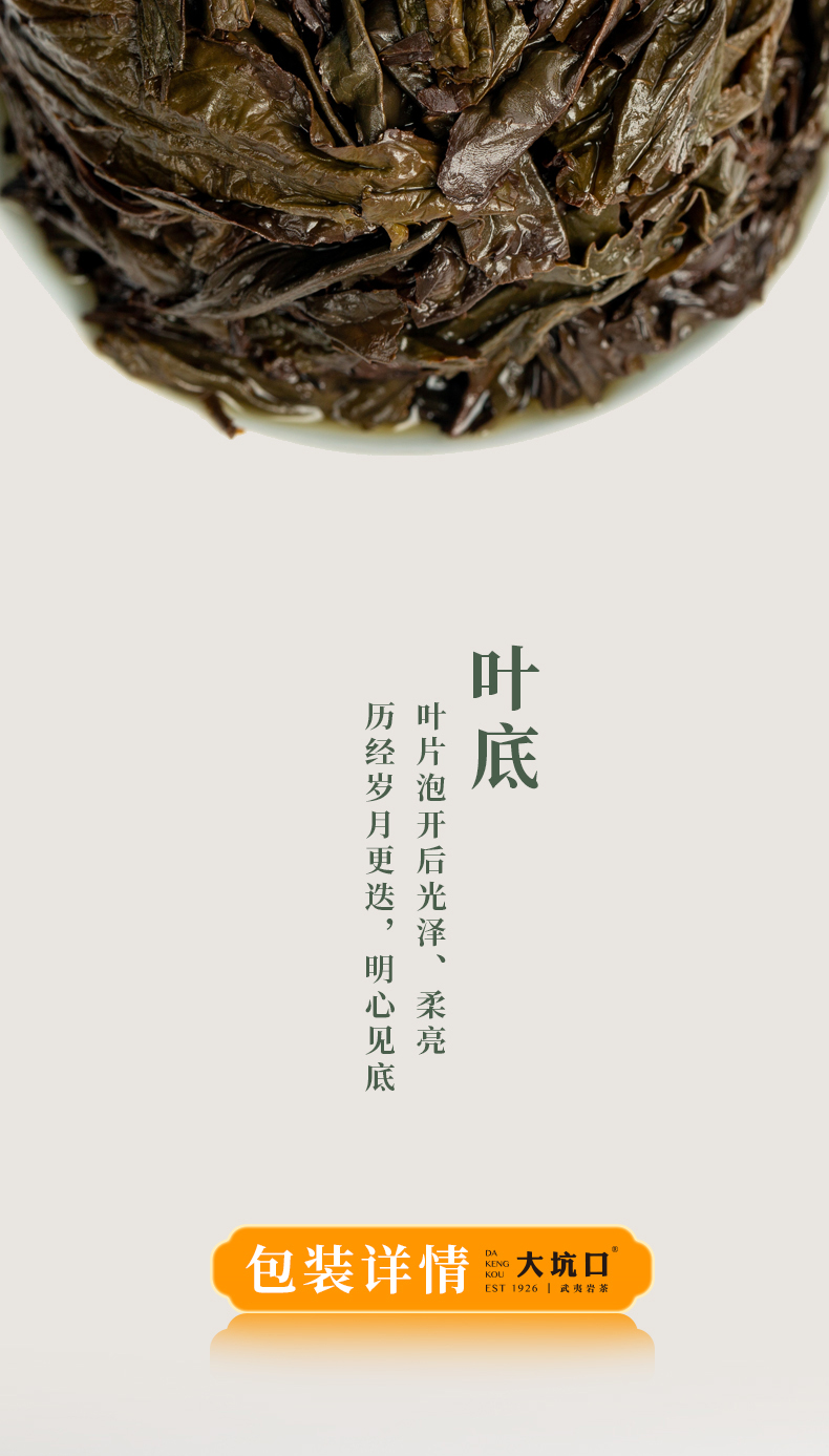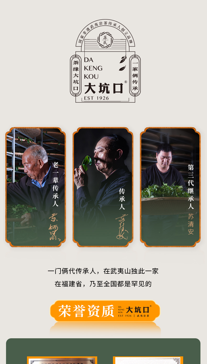 - 大坑口岩茶有限公司,位于武夷山市-天心村,茶山分布于正岩产区的“三坑、两涧”,由首批非物质文化遗产武夷岩茶制作技艺传承人:苏炳溪和第二批传承人:苏德发先生的精心手工制作,造就了大坑口岩茶的独特品质