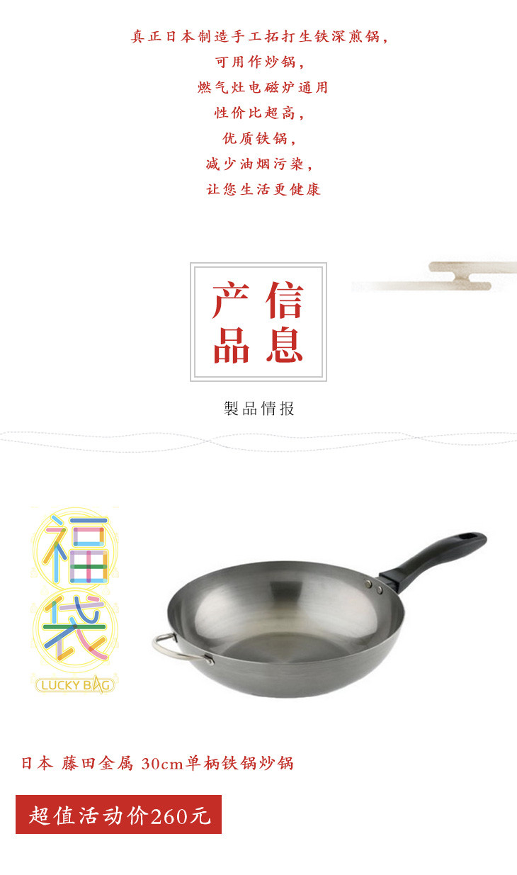 四周年店庆 藤田金属 30cm单柄铁锅炒锅 超值福袋 9/19抢购 9/21开始发货