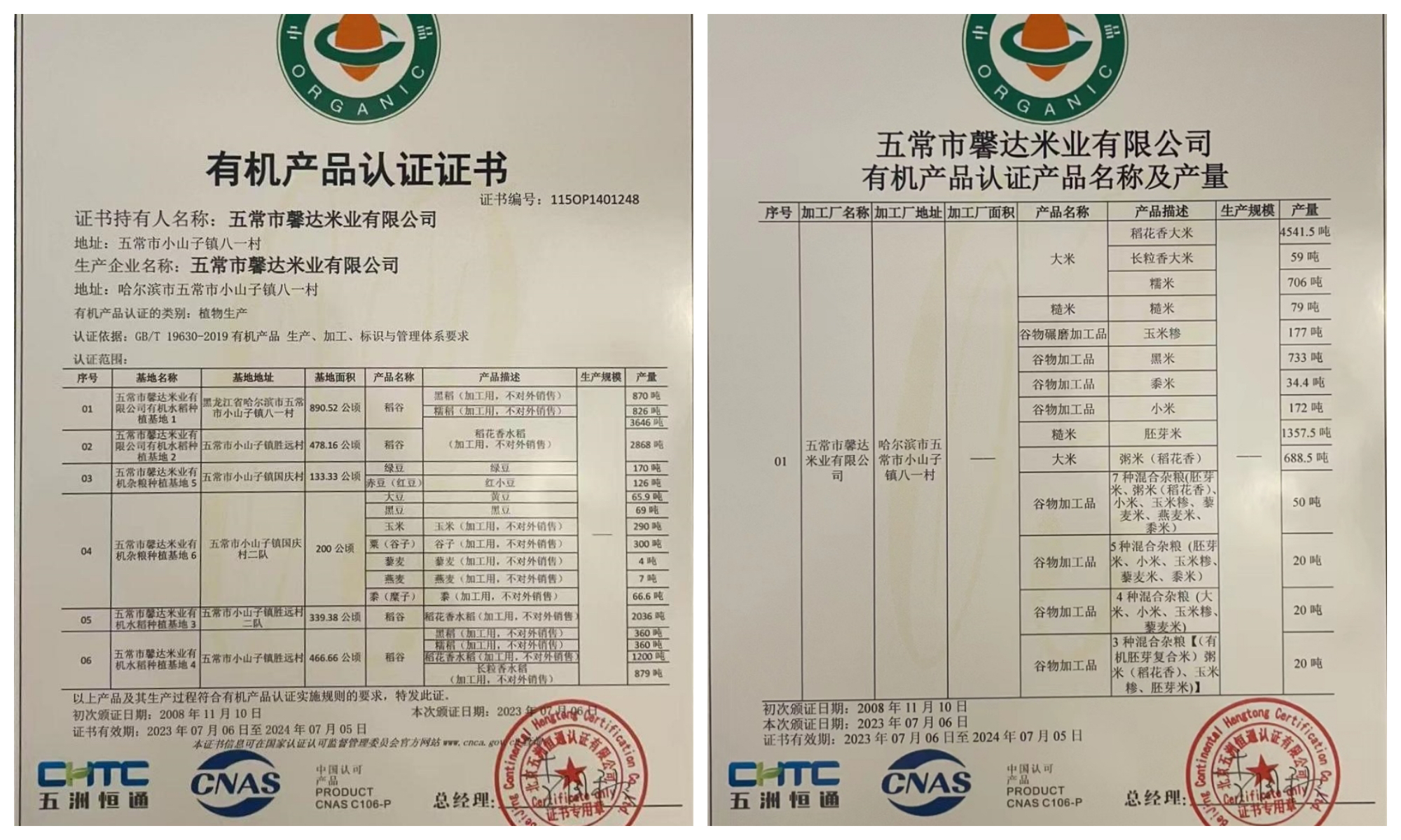品名:有机五常稻花香(真空装)、有机五常稻花香礼盒(真空装)、有机五常稻花香(米桶装)