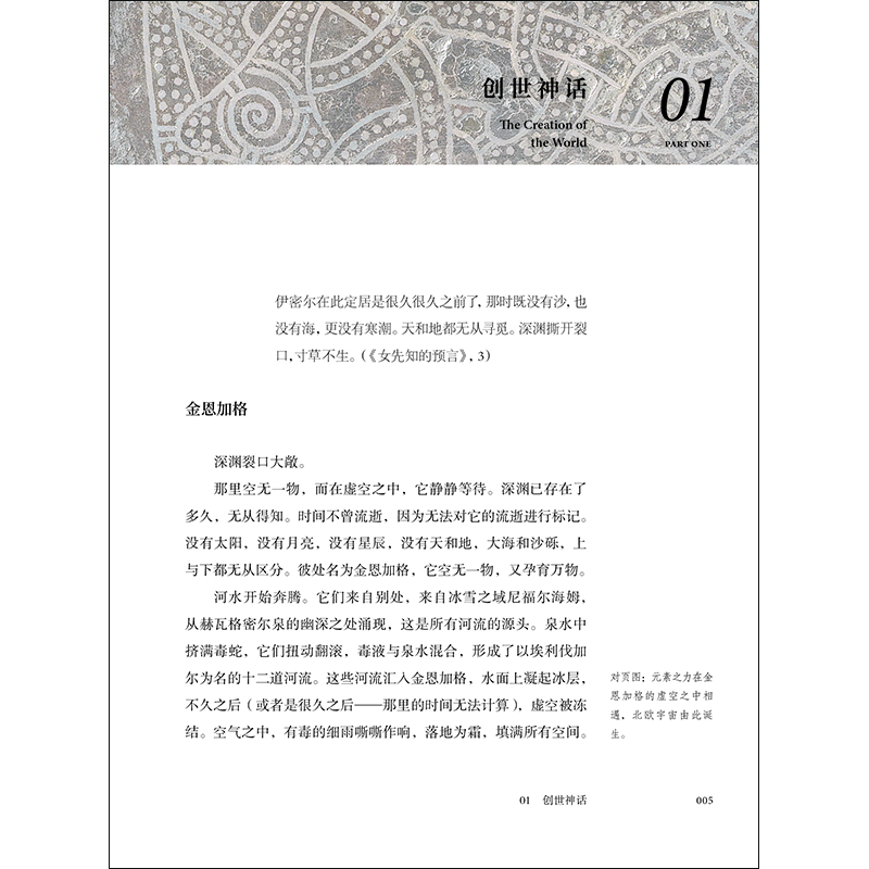 从创世神话到毁灭世界的最终之战——诸神黄昏,这里讲述了众多神祇的故事——神秘的奥丁、狡黠叵测的洛基、强大鲁莽的托尔……以及他们与巨人的冲突争斗,这些神话带我们踏上一段穿越北欧宇宙的惊险旅程。