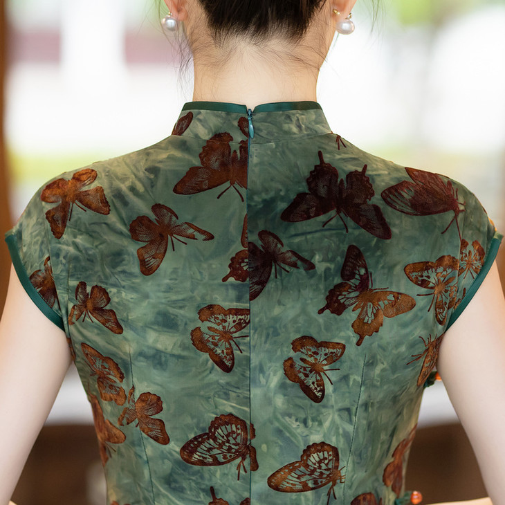 ZAYS植绒扎染旗袍2024夏季时尚年轻款修身老上海复古气质改良女装旗袍