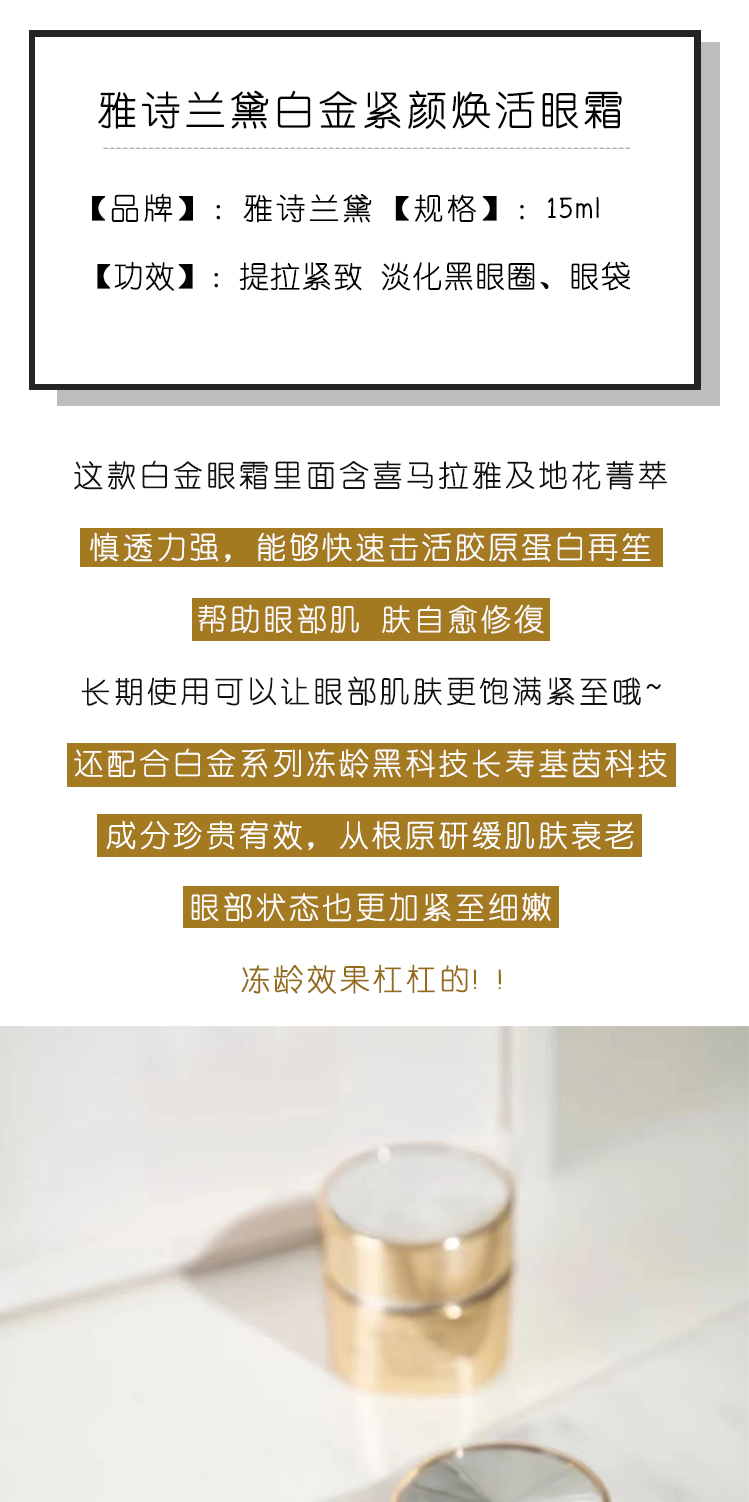 专柜1020 雅诗兰黛 冻龄白金级眼霜菁萃紧颜焕活15ml 抗老去纹去黑眼圈
