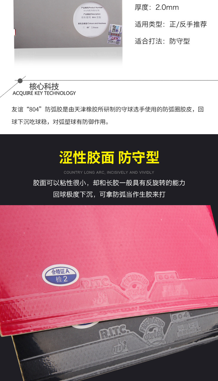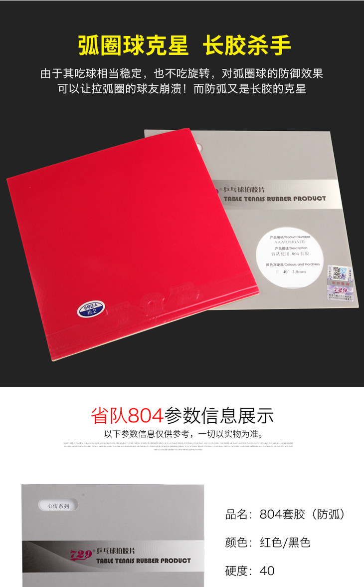 友谊729 804防弧反胶 804心传省队 套胶防守型 乒乓球胶皮 防弧圈球
