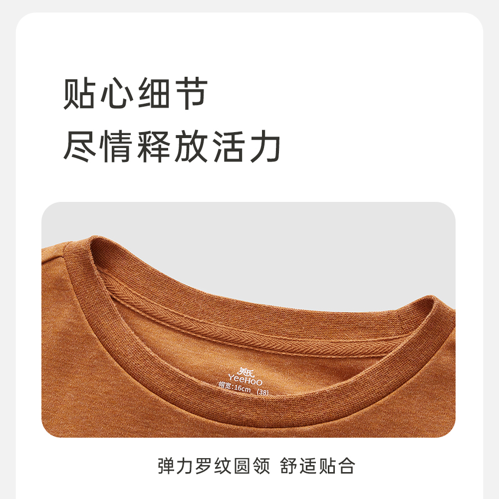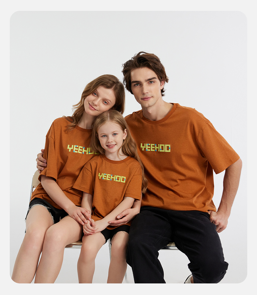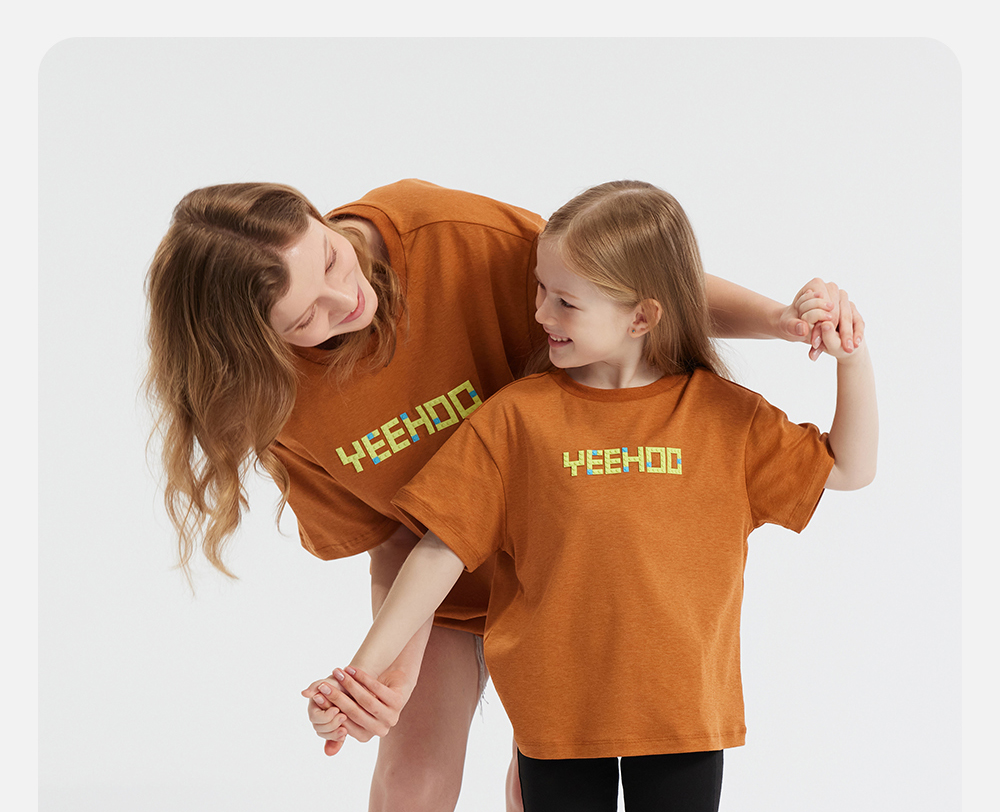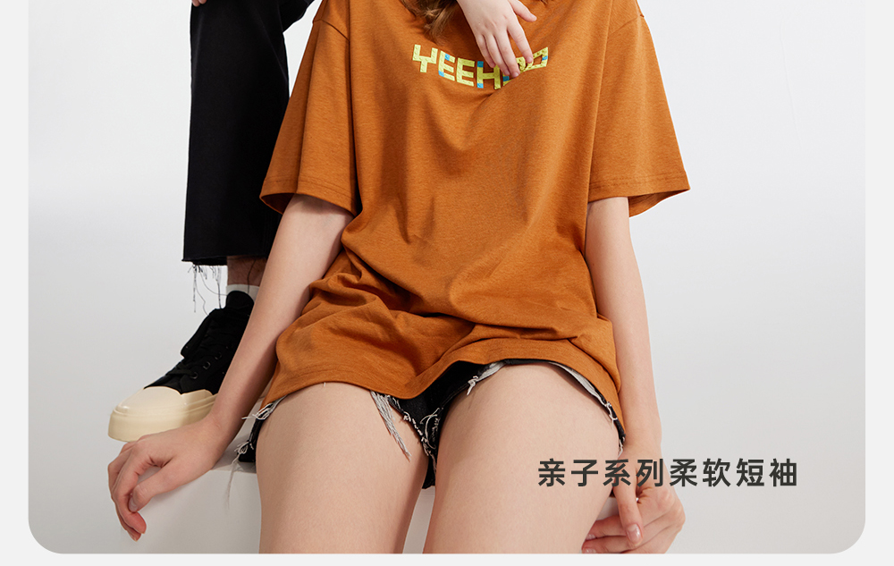 英氏亲子装T恤男女短袖透气纯棉上衣百搭休闲套头衫春夏新款