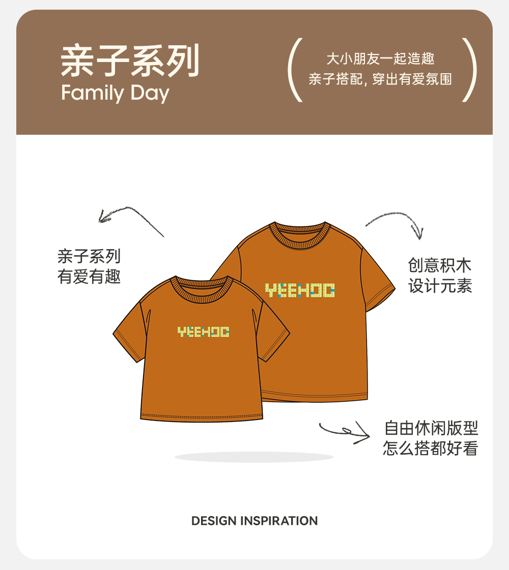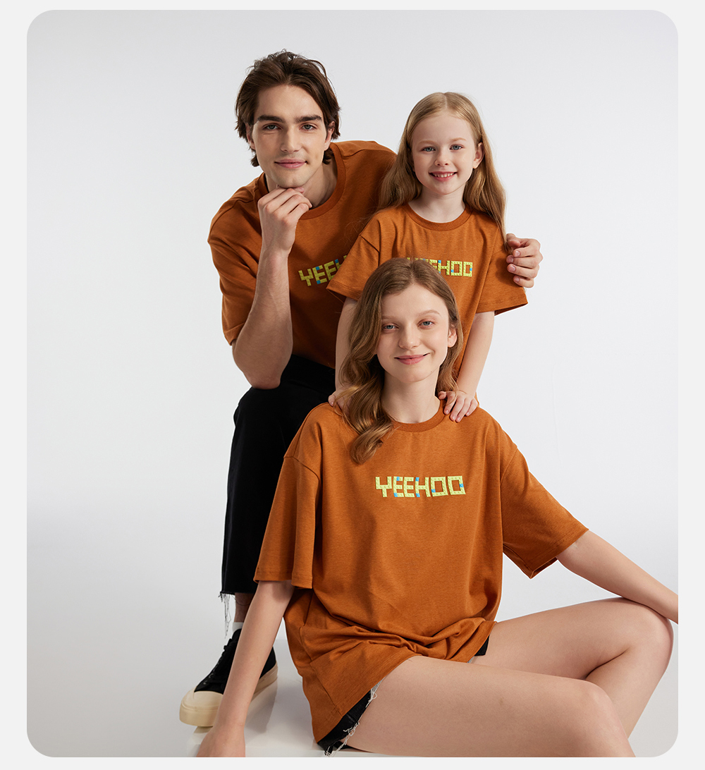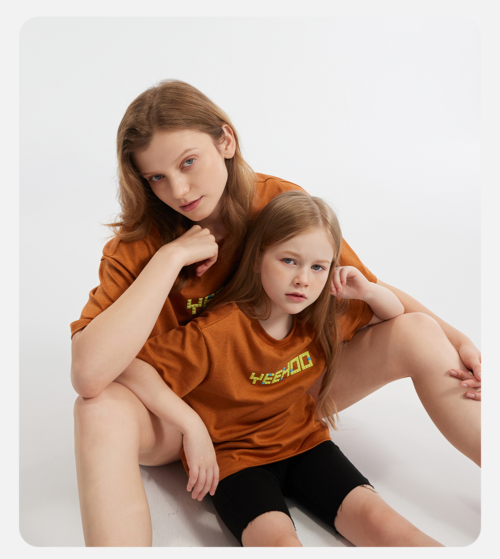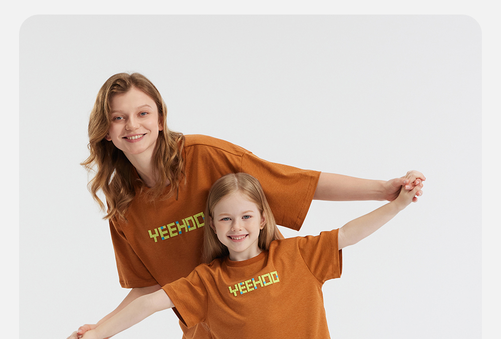 英氏亲子装T恤男女短袖透气纯棉上衣百搭休闲套头衫春夏新款