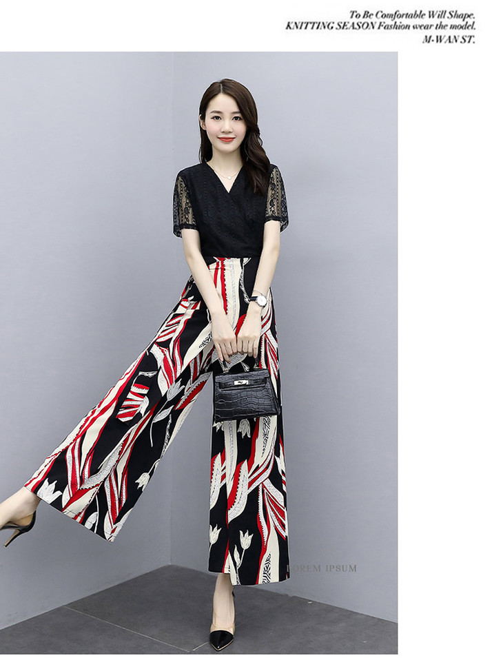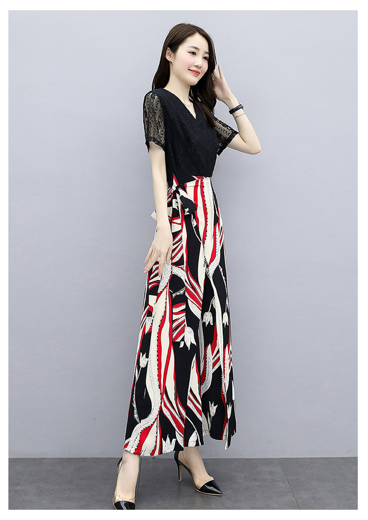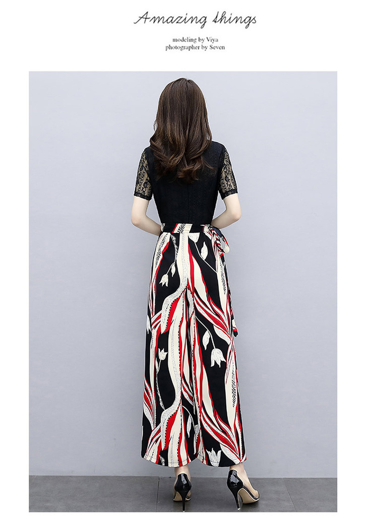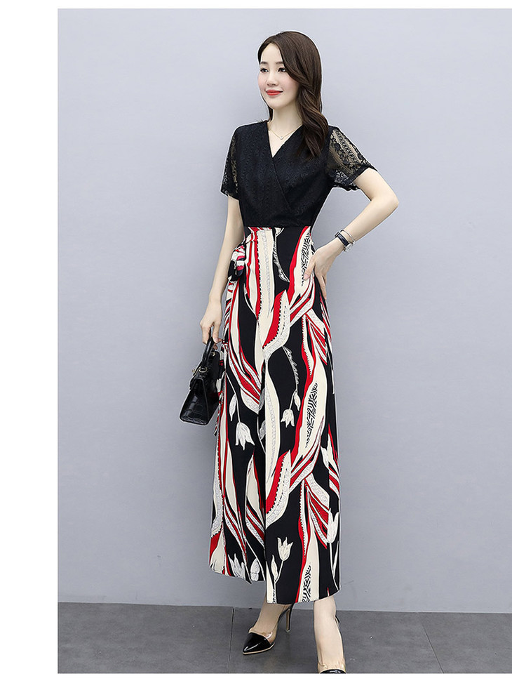 HR-MY2053气质显瘦,高腰垂感拼接雪纺阔腿连体裤