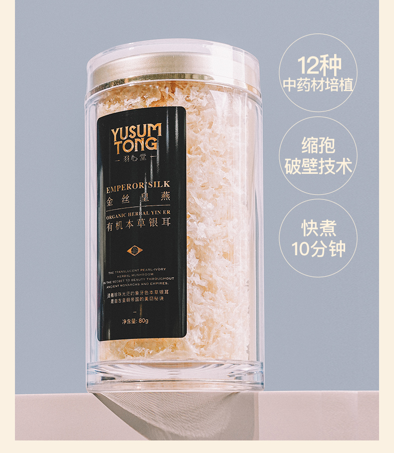 【桃红梨白】羽心堂皇燕银耳 金丝皇燕有机本草银耳80g 孕妇可用 国内发货