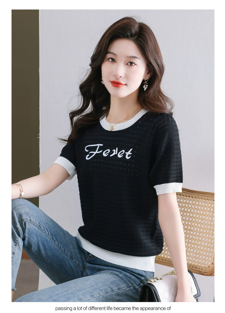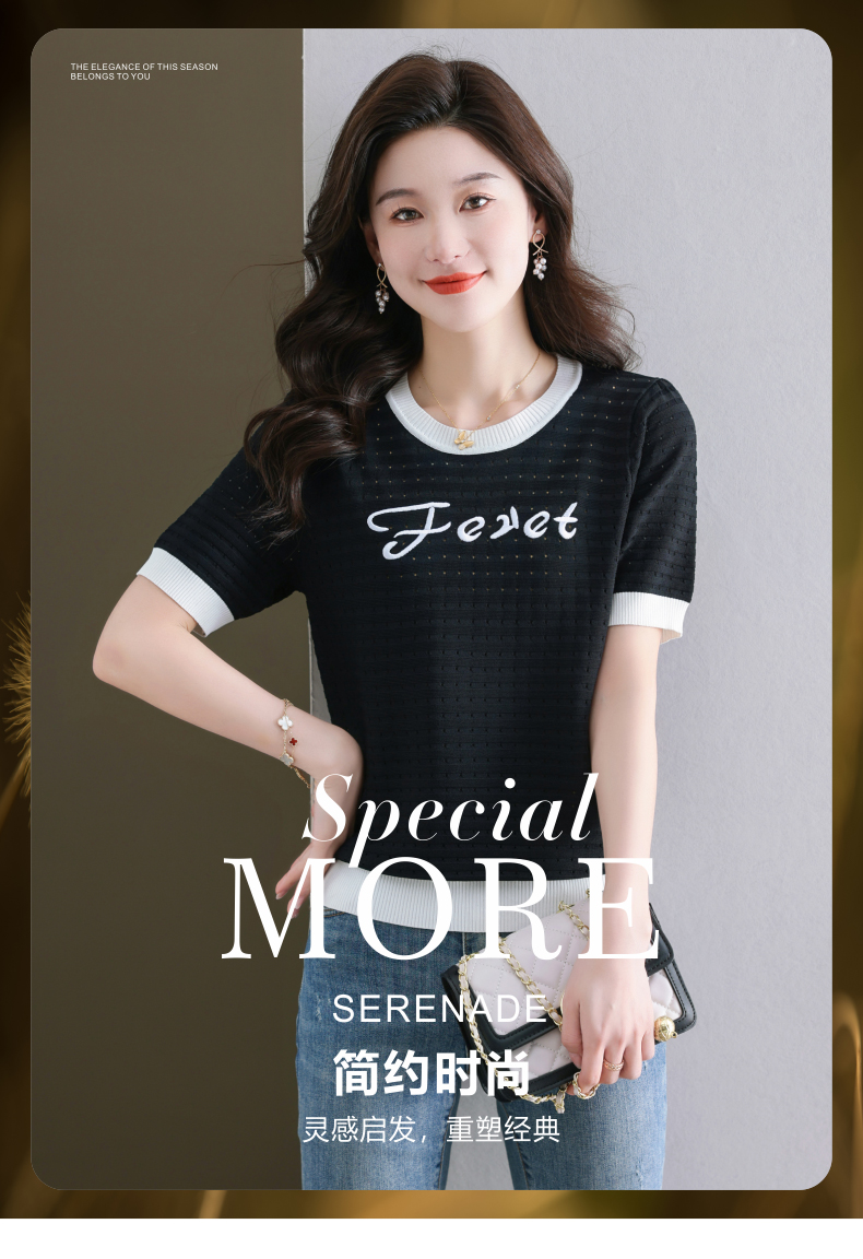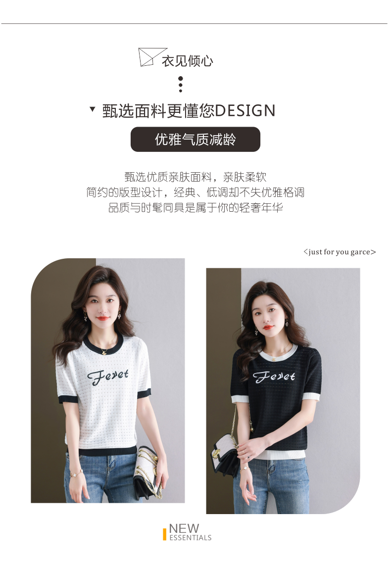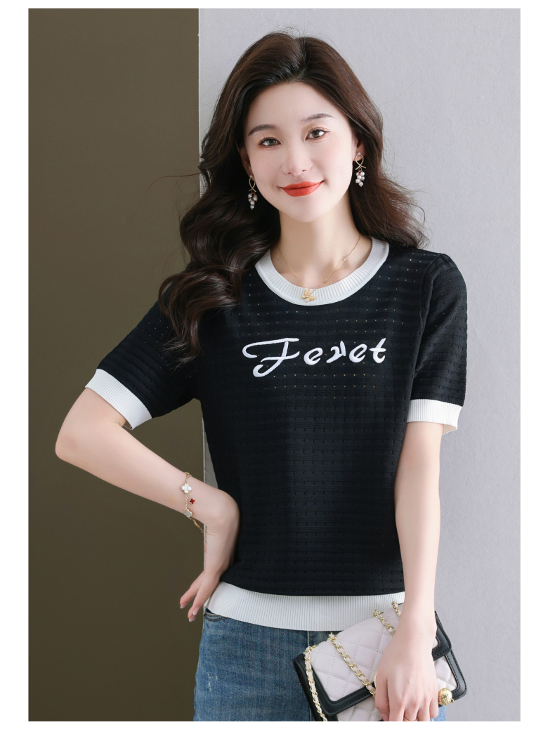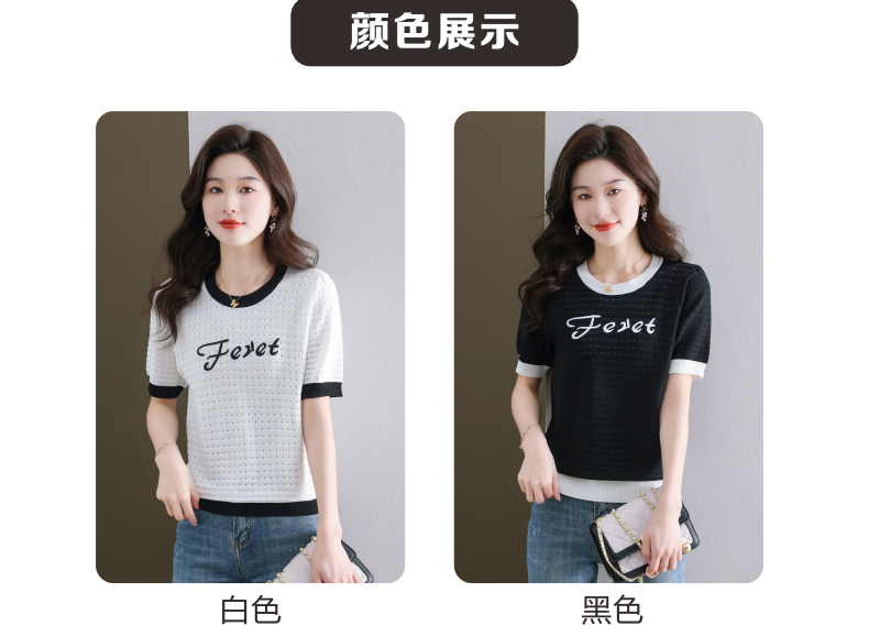 短款小个子短袖t恤女,夏装新款薄款镂空针织上衣女洋气小衫CC-28-6156