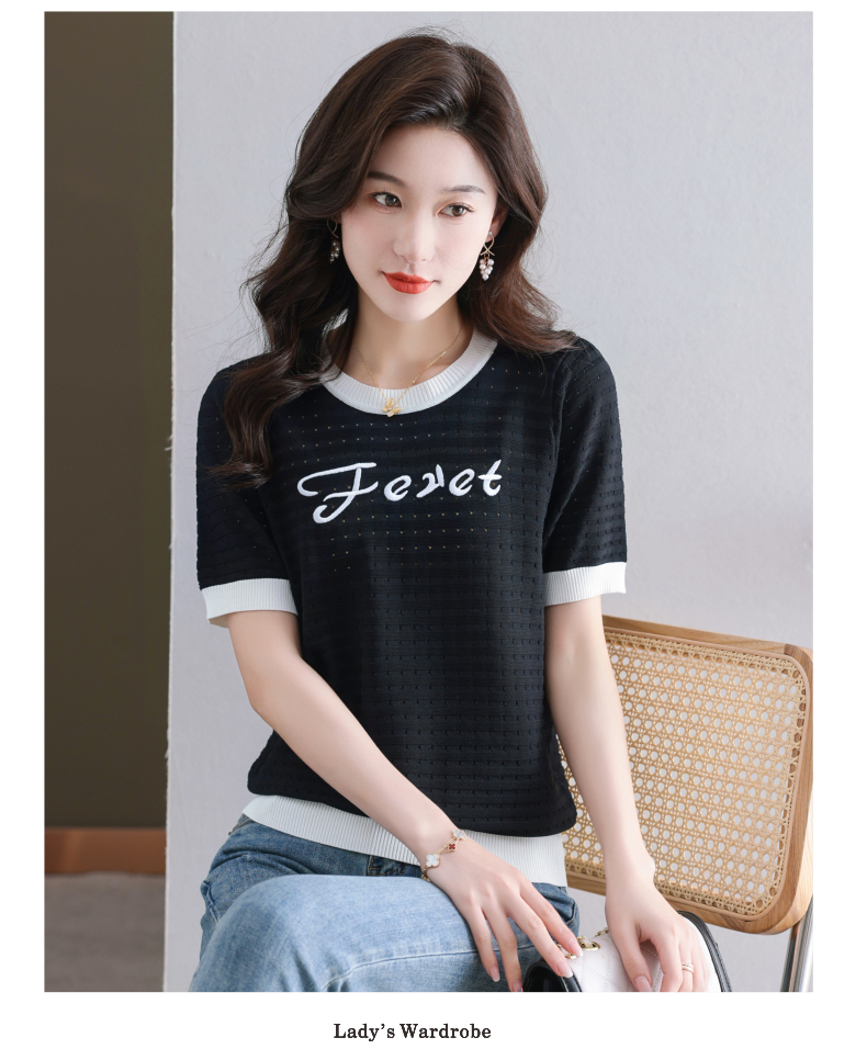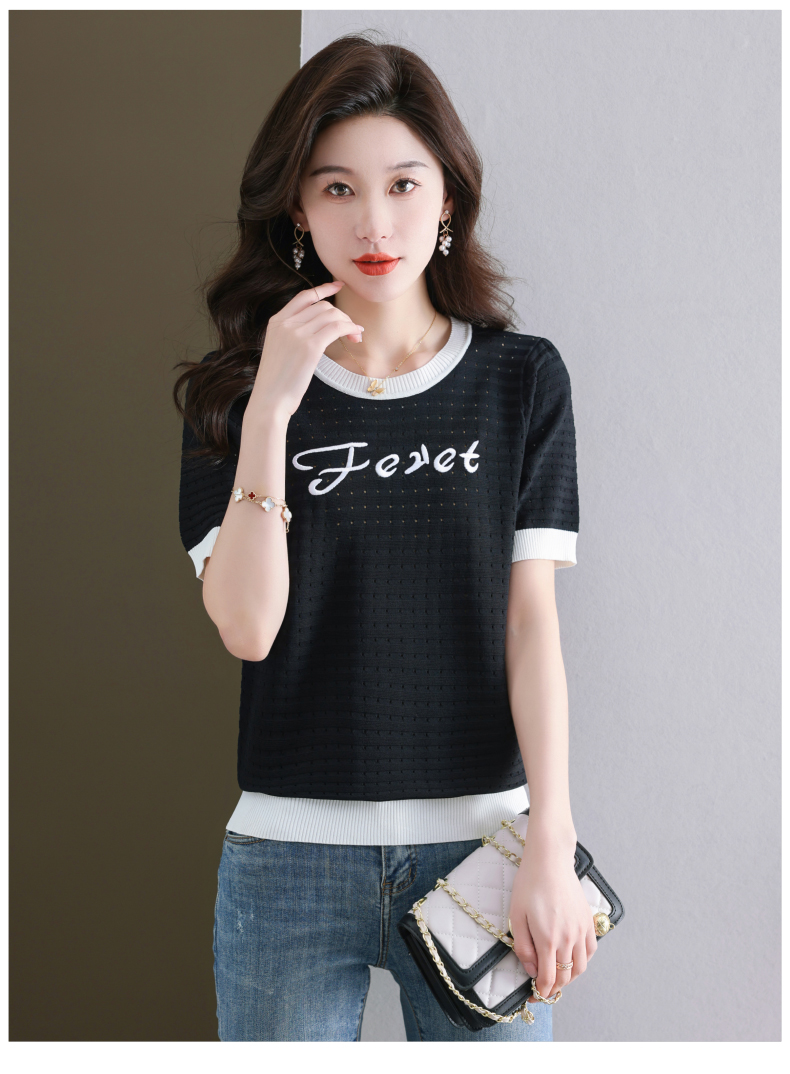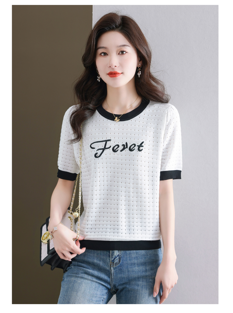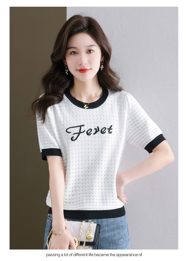 短款小个子短袖t恤女,夏装新款薄款镂空针织上衣女洋气小衫CC-28-6156