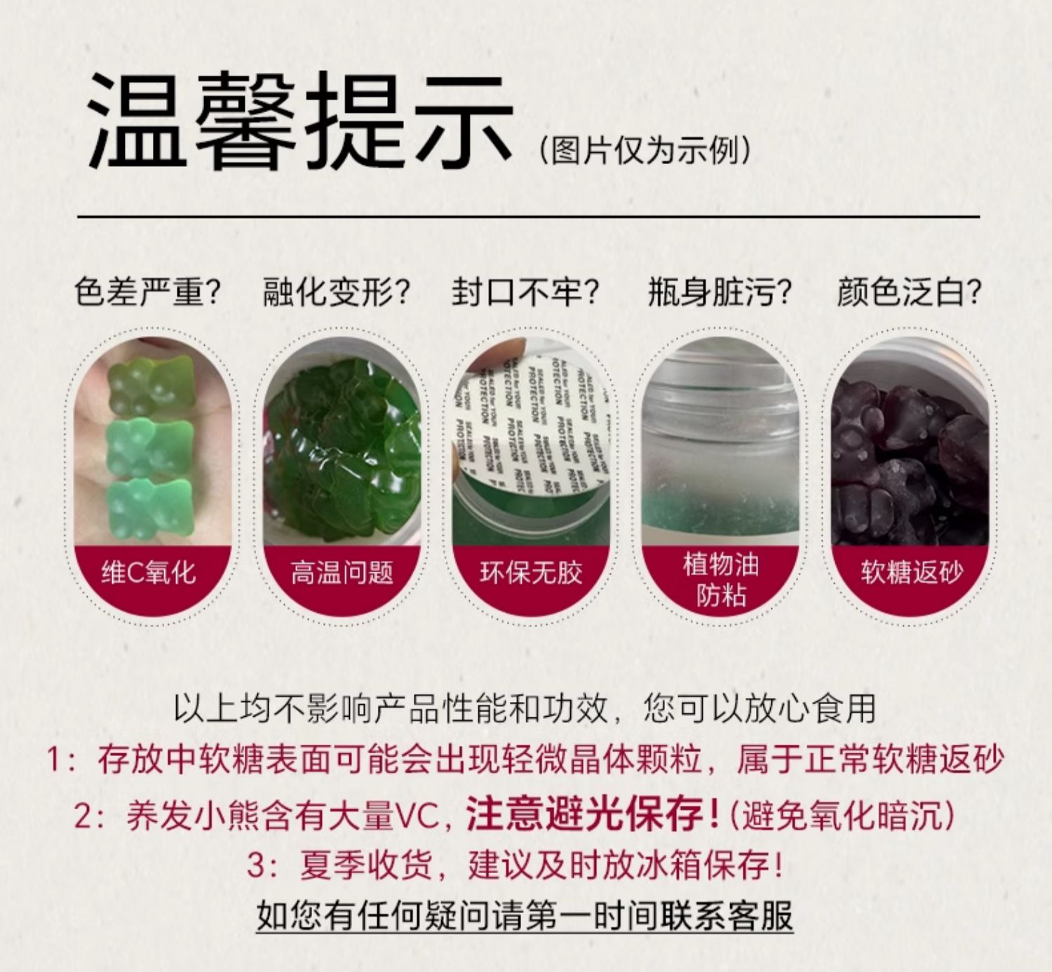 1、收到后如有质量问题24小时之内带清晰的❗️面单照+外箱4面照+产品照❗️联系客服进行赔付或补发;