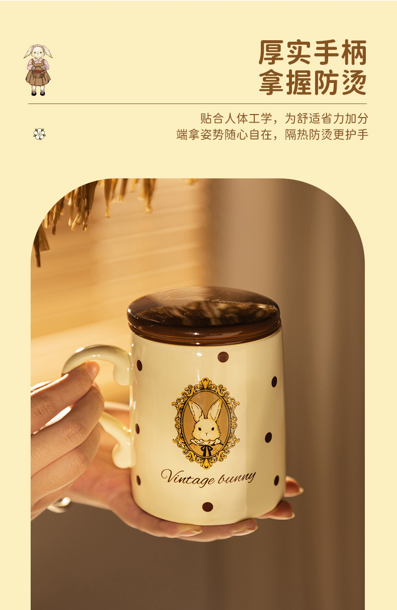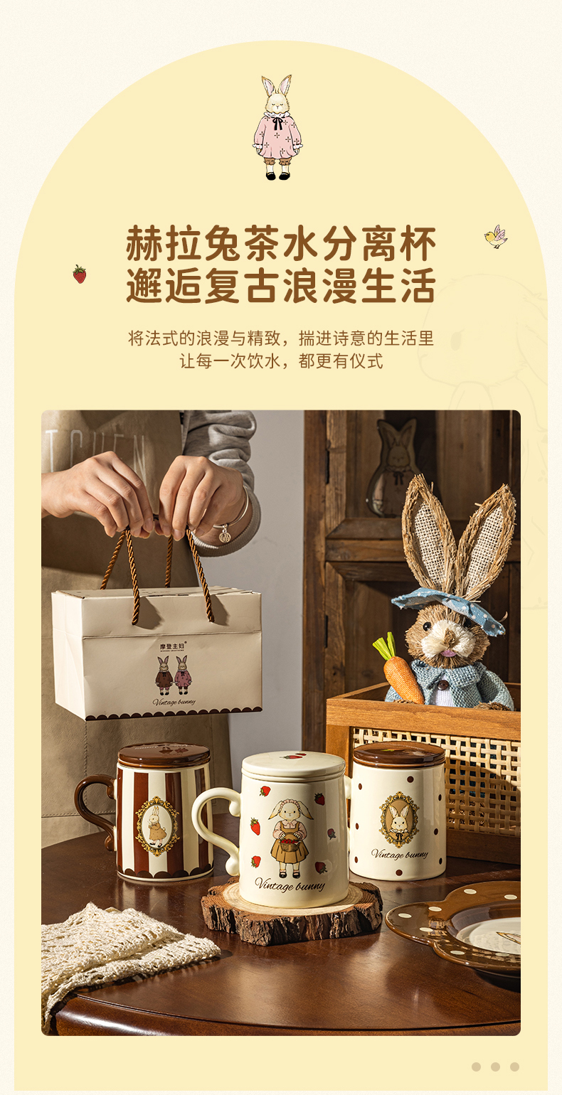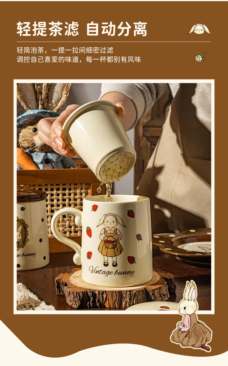 摩登主妇赫拉兔马克杯办公室茶水分离杯喝茶杯子高颜值陶瓷茶隔杯