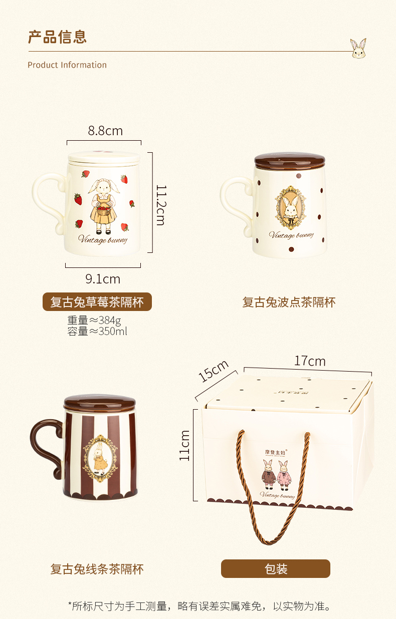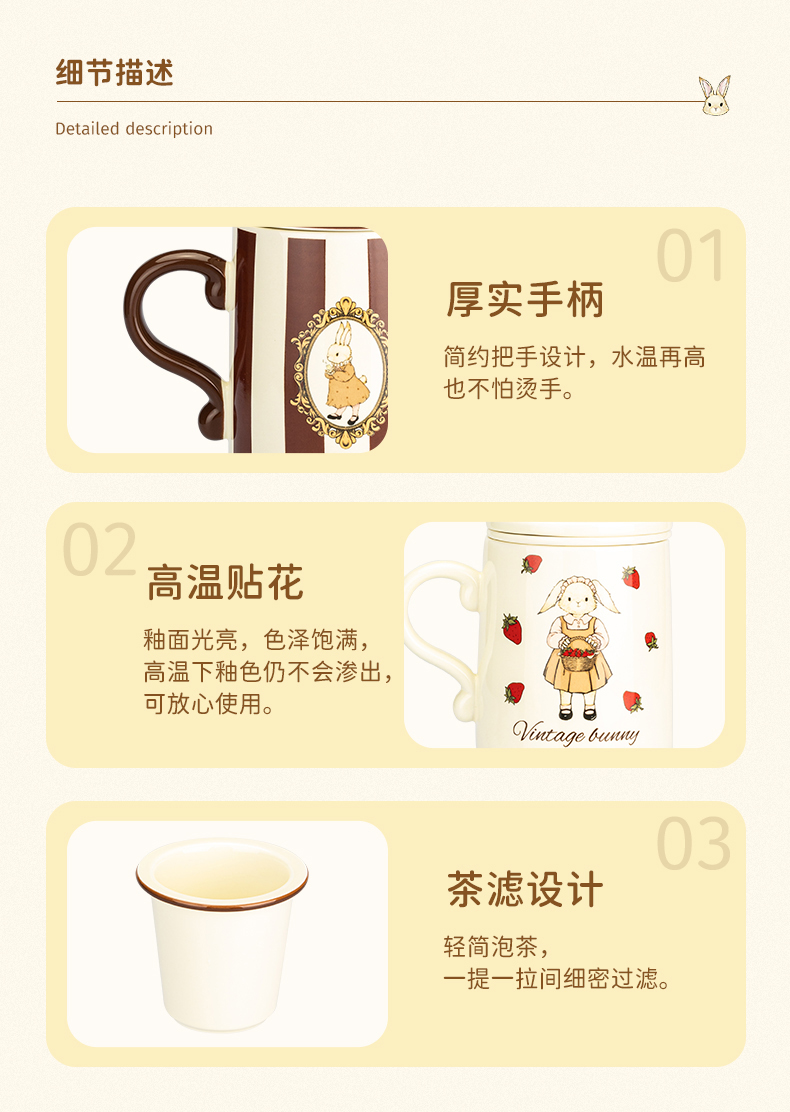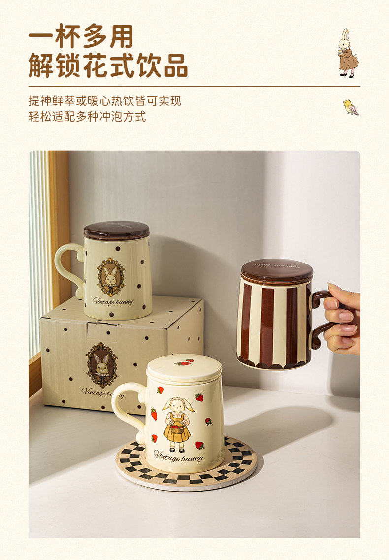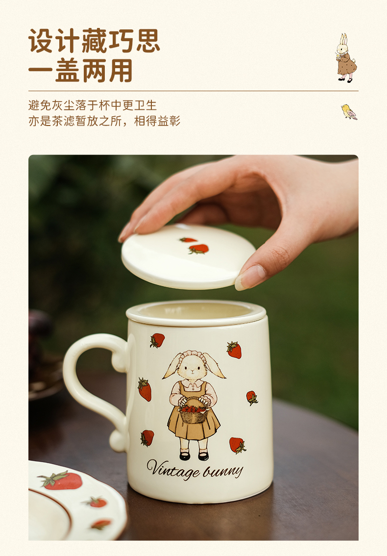摩登主妇赫拉兔马克杯办公室茶水分离杯喝茶杯子高颜值陶瓷茶隔杯