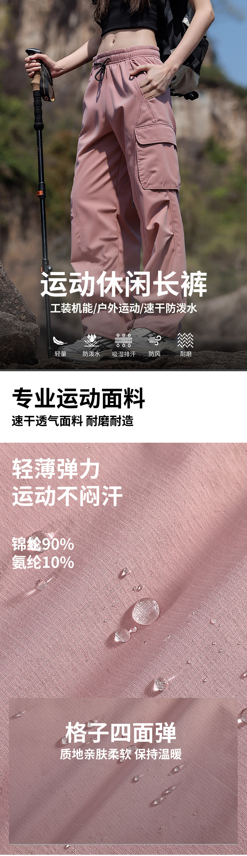 跃牌【跃LEAP-ACTIVE】山系冲锋裤女秋冬季防水运动长裤锦纶格子四面弹速干裤L52231