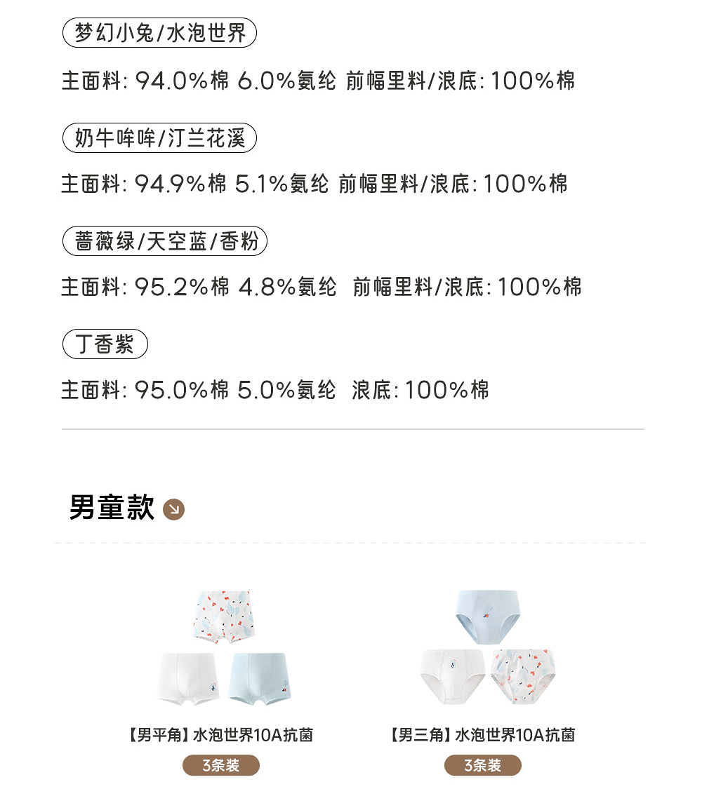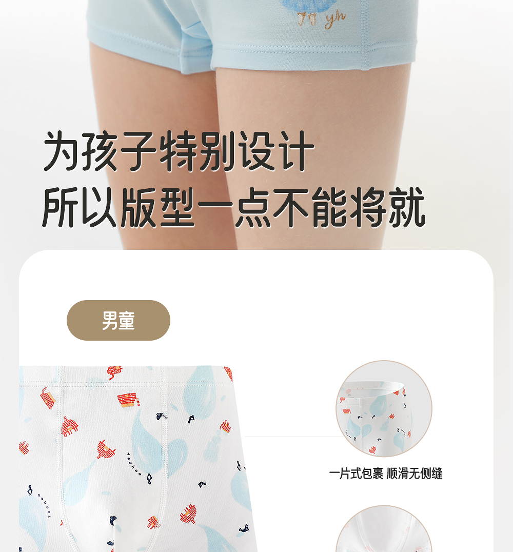 英氏【10A抑菌】儿童平角裤抗菌内裤超柔透气舒适四季适用亲肤四角裤中大童