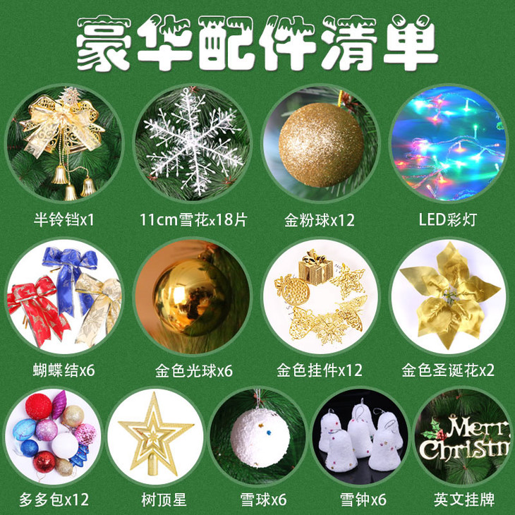 松针圣诞树套餐1.5m/1.8m豪华加密装饰圣诞节装饰品家用商城教室装饰包邮
