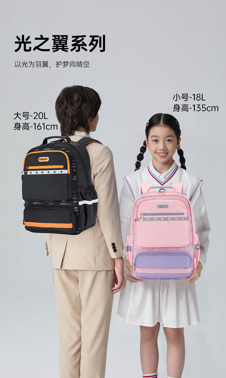 卡拉羊18L/20L小学生1-6年级5维减负防下坠风琴书包大容量双肩背包光之翼CX2267+2504