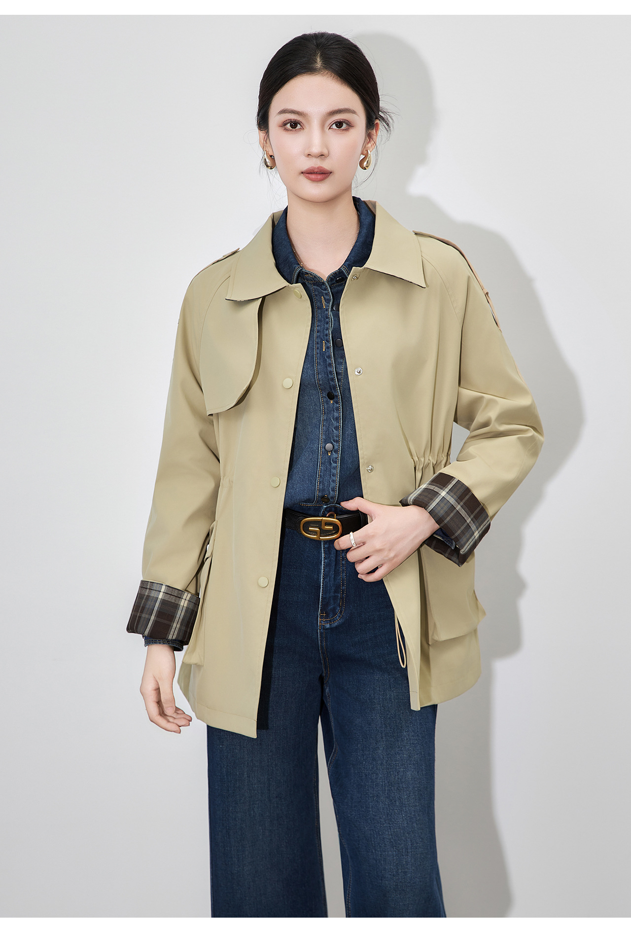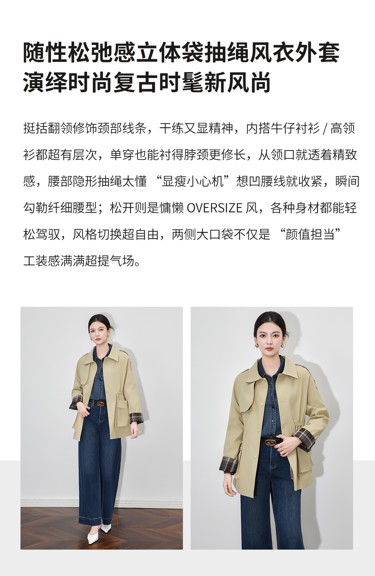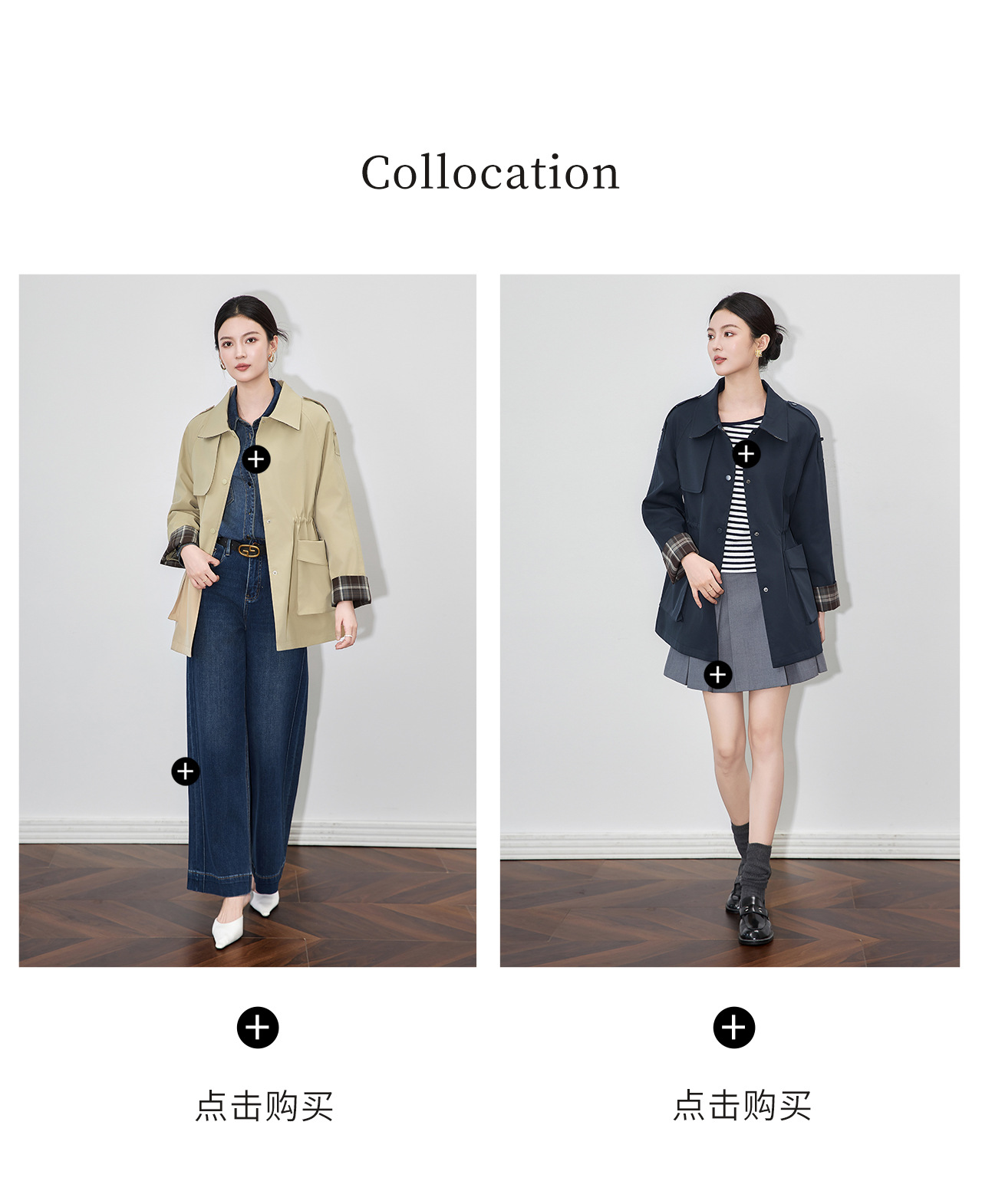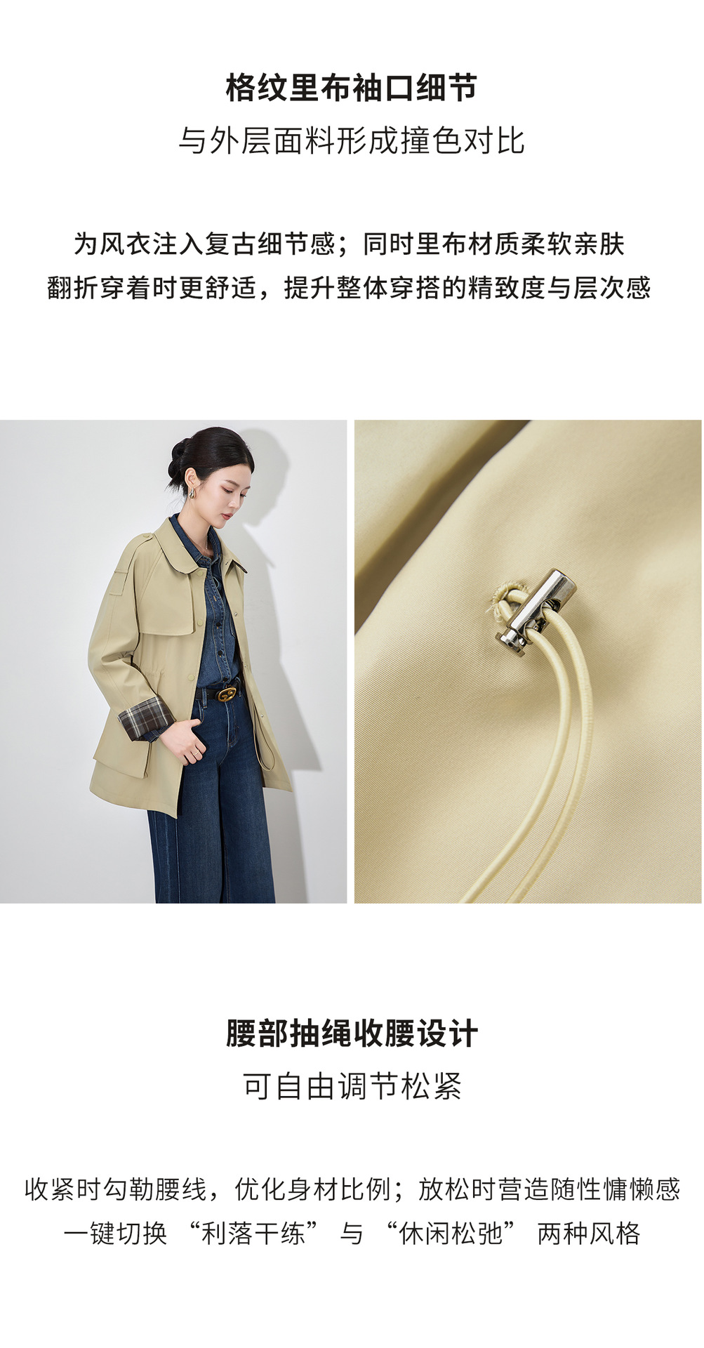 「高货wl」全新升级【铂金会员385/天猫519/差价134】(01234)洛诗琳轻奢收腰通勤风衣2025秋季气质格纹拼接中长款外套