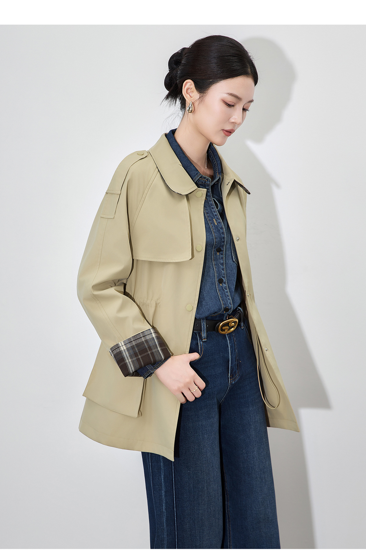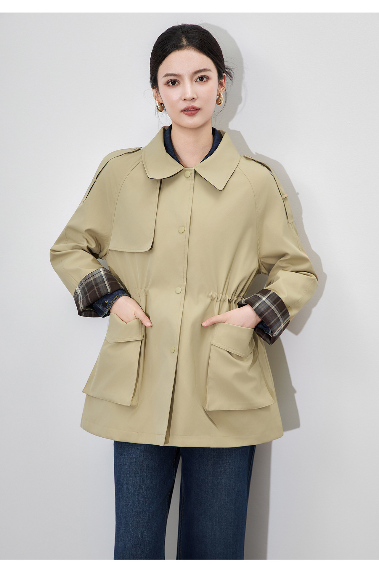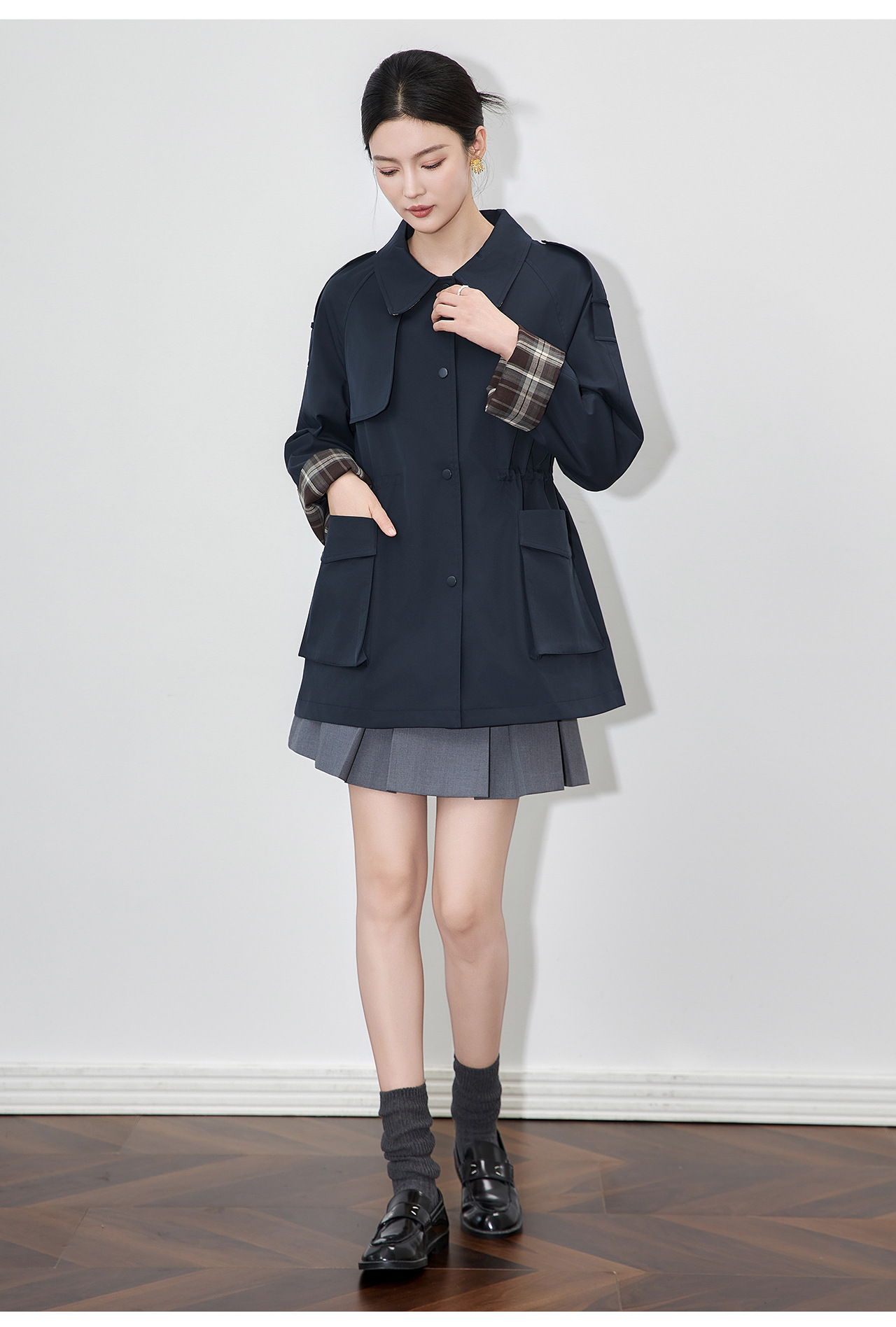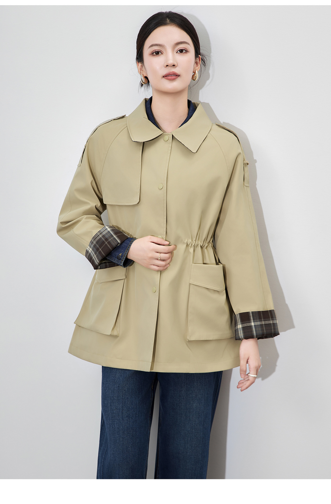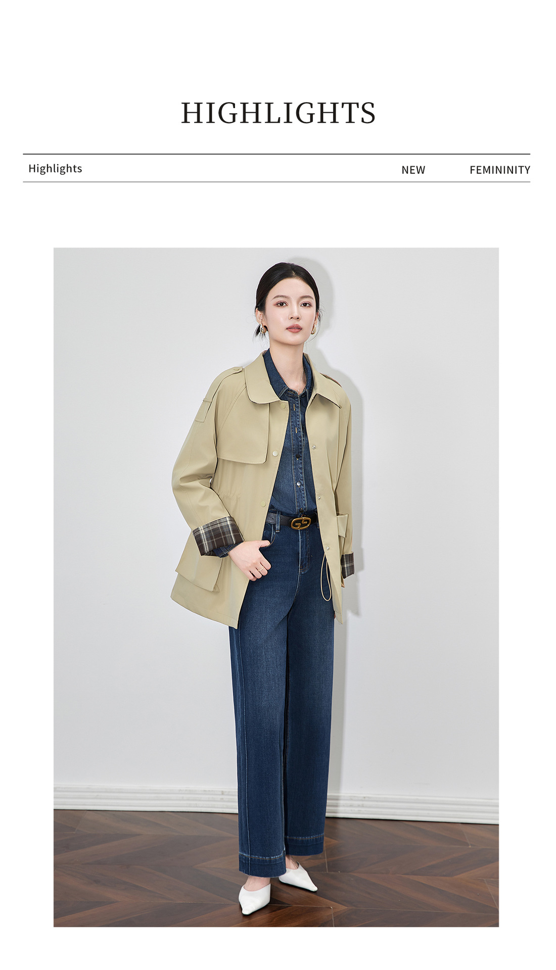 「高货wl」全新升级【铂金会员385/天猫519/差价134】(01234)洛诗琳轻奢收腰通勤风衣2025秋季气质格纹拼接中长款外套