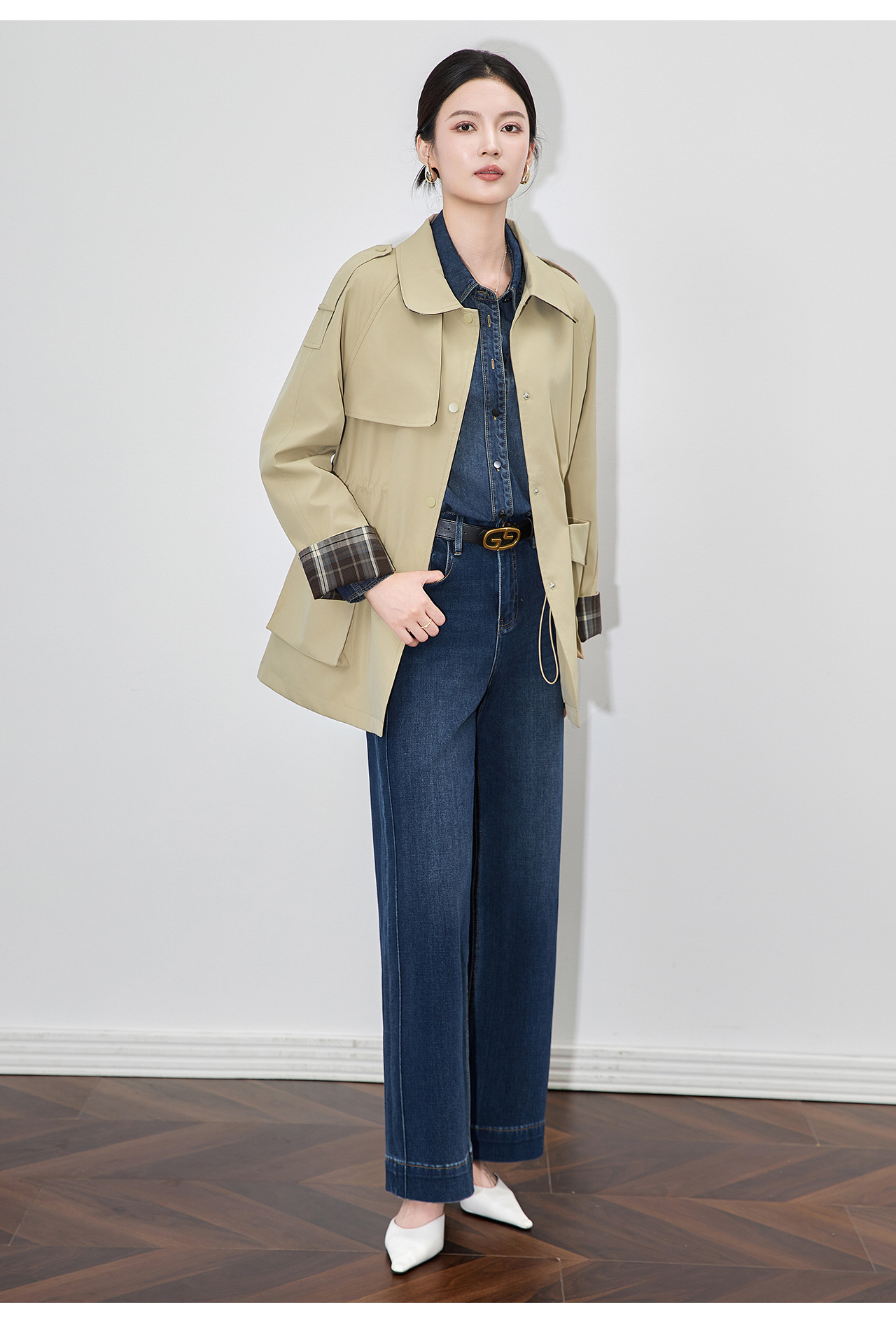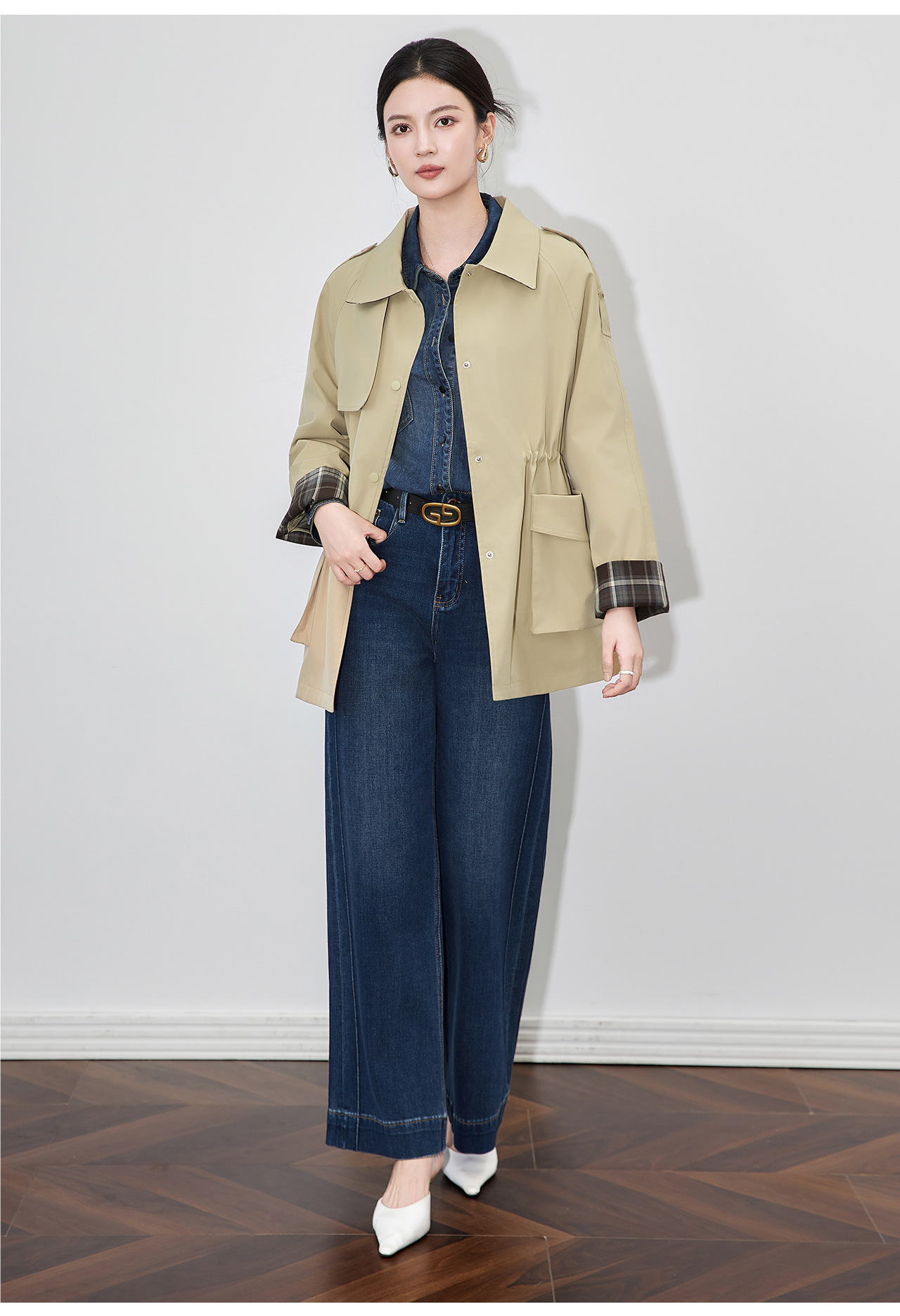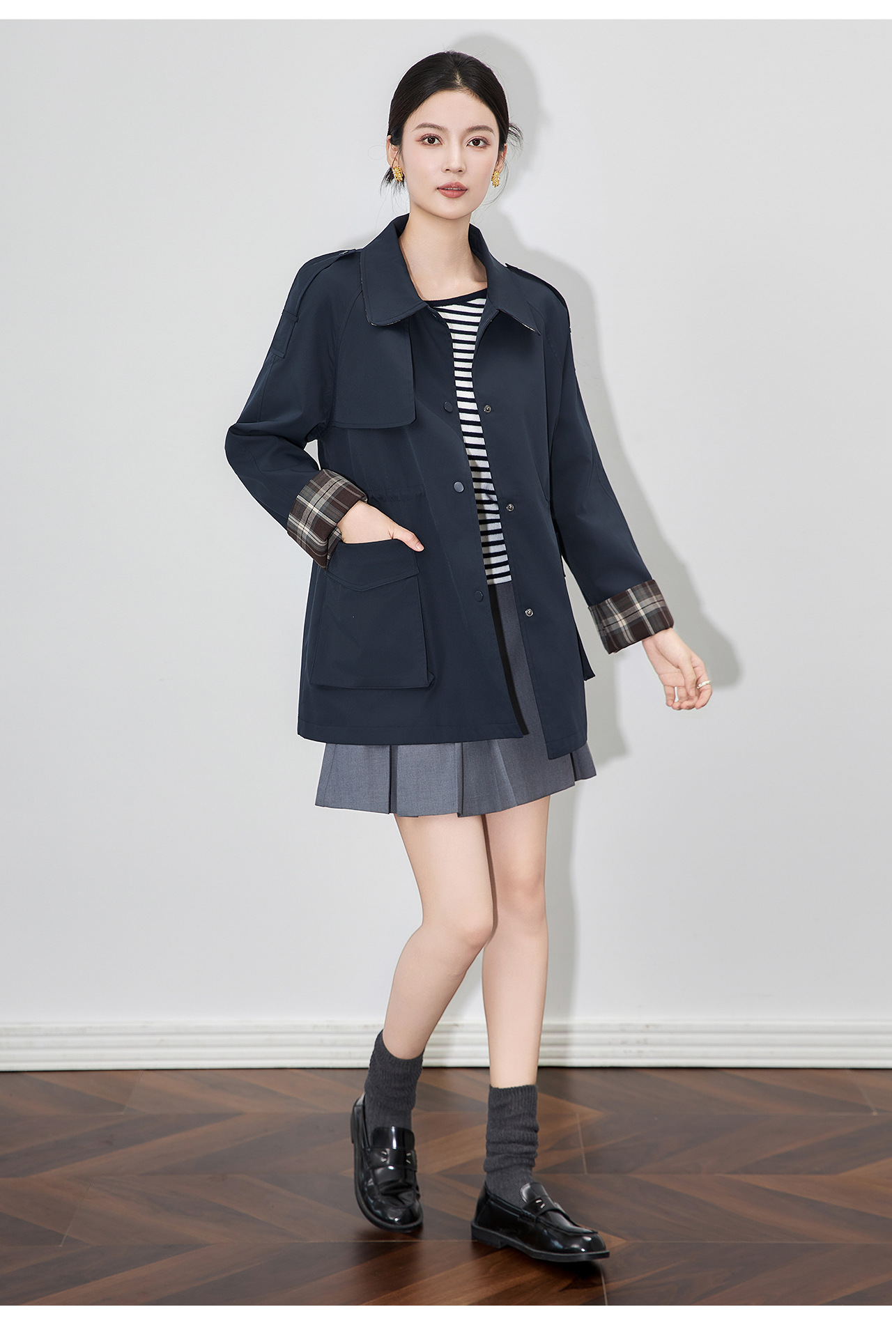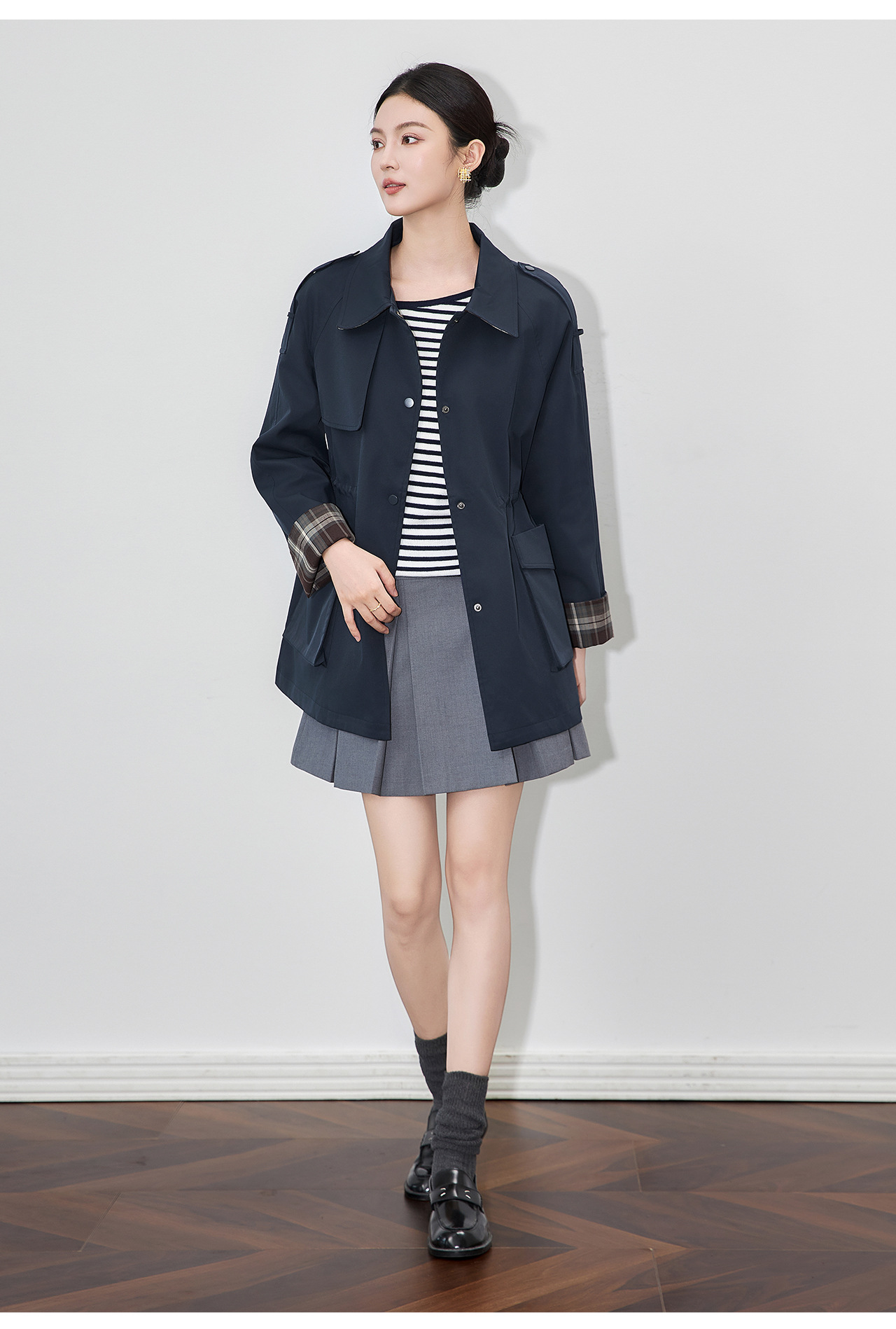 「高货wl」全新升级【铂金会员385/天猫519/差价134】(01234)洛诗琳轻奢收腰通勤风衣2025秋季气质格纹拼接中长款外套
