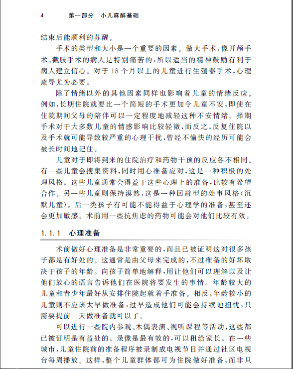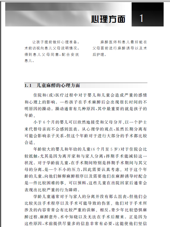 我们非常荣幸能够邀请到来自于波士顿麻省总医院的查尔斯.J.科特博士参加了第六版手册的编写工作。科特博士在儿童麻醉、镇静及临床科研方面有着丰富的经验。第六版手册的三位作者总结了不同年龄段儿童手术前后需要关注的相关问题。最近,我和我的同事们把我们的经验推广到手术室外,为全院需要做各种检查或减轻疼痛的患儿提供帮助。第六版手册的编写不仅有我们经验的高度总结,也包含了大量已发表论文的高度提炼。本书的内容已经过所有作者的审查并且取得了共识。在大多数情况下,我们为临床推荐具体的方案,我们这样做是基于我们曾经成功的经验。然而,我们意识到,其他医师可能有其他的想法或有一些特殊的限制。