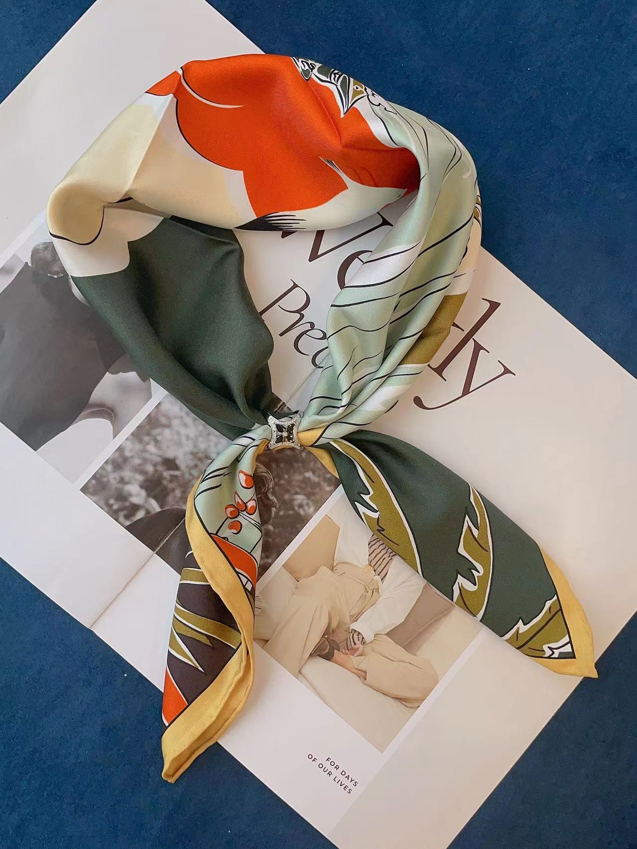 【甄珠贝·时尚高级感系列】心意满满的丝巾礼盒!70*70cm双面异色丝巾,蜻蜓淡水胸花和施华洛丝巾扣组合