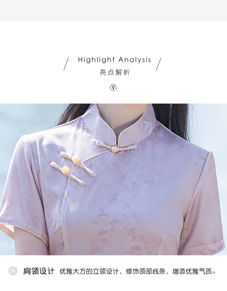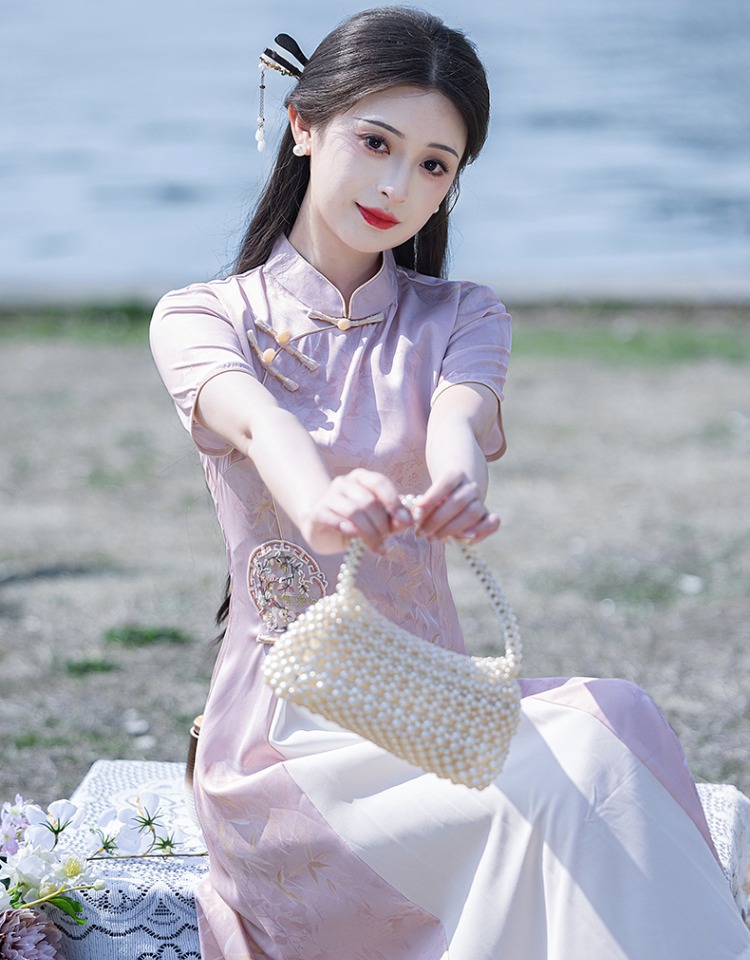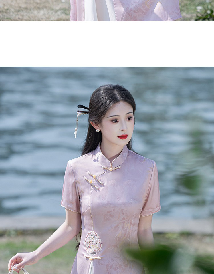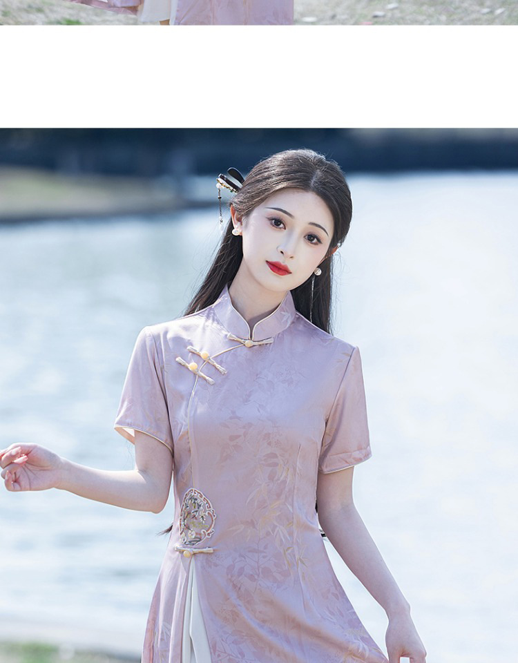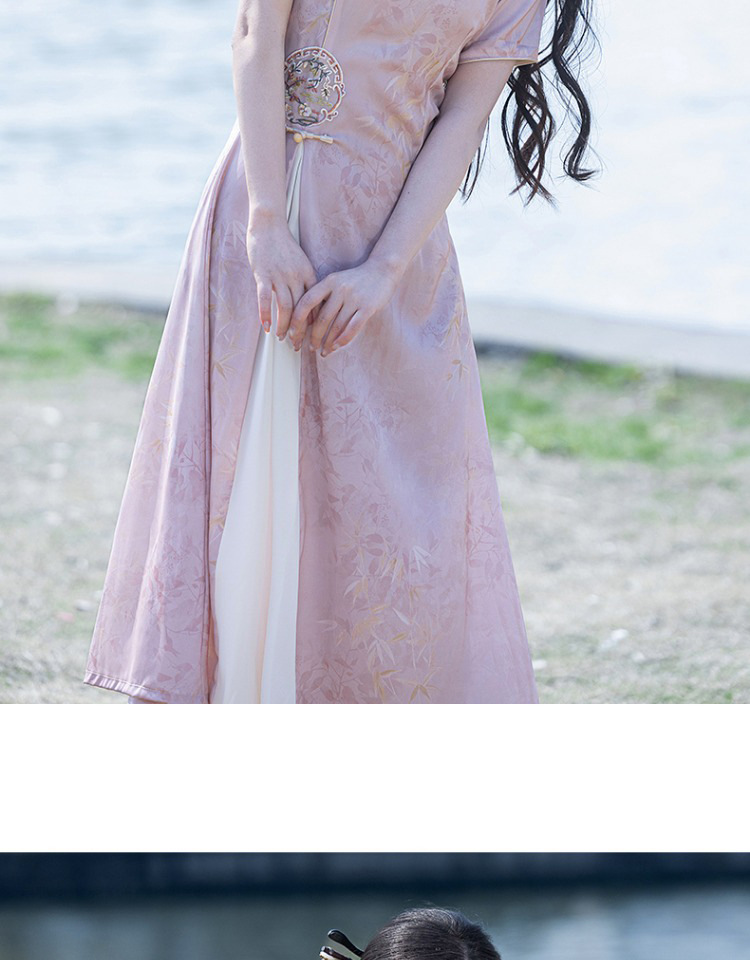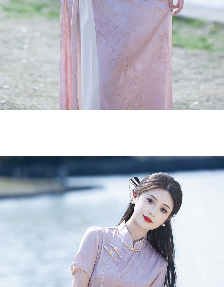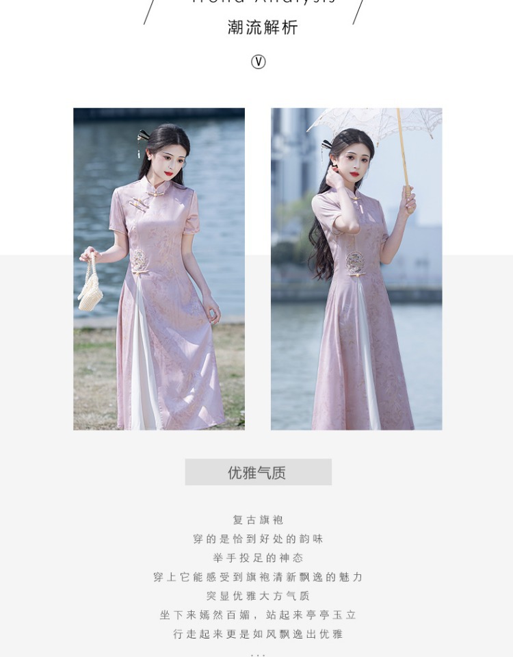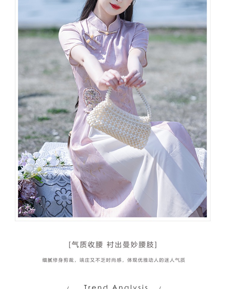 LSB3689粉色奥黛旗袍2025新款高考旗开得胜女夏季新中式日常订婚礼服裙 商品图2
