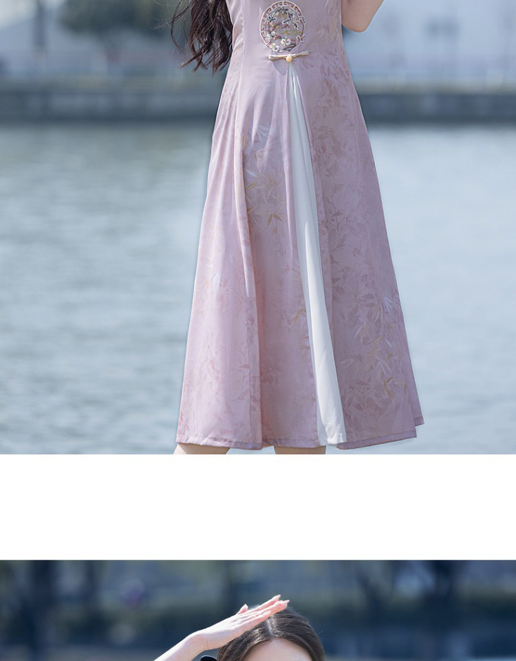 LSB3689粉色奥黛旗袍2025新款高考旗开得胜女夏季新中式日常订婚礼服裙 商品图4