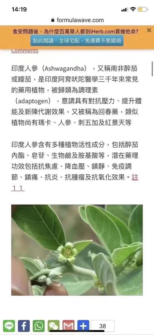 南非醉茄也叫有机印度人参,对抗压力以及疲倦的功效,不是来自印度[破涕为笑]【一天2颗,每瓶180颗】有机印度人参精华,好莱坞女星葛妮斯.派特洛的果昔食谱中推荐。印度人参是印度阿育吠陀医学三千年来常见的药用植物,可以抗焦虑、镇静、调节免疫力、镇痛、抗炎、增加活力、缓解压力、促进大脑和认知功能!