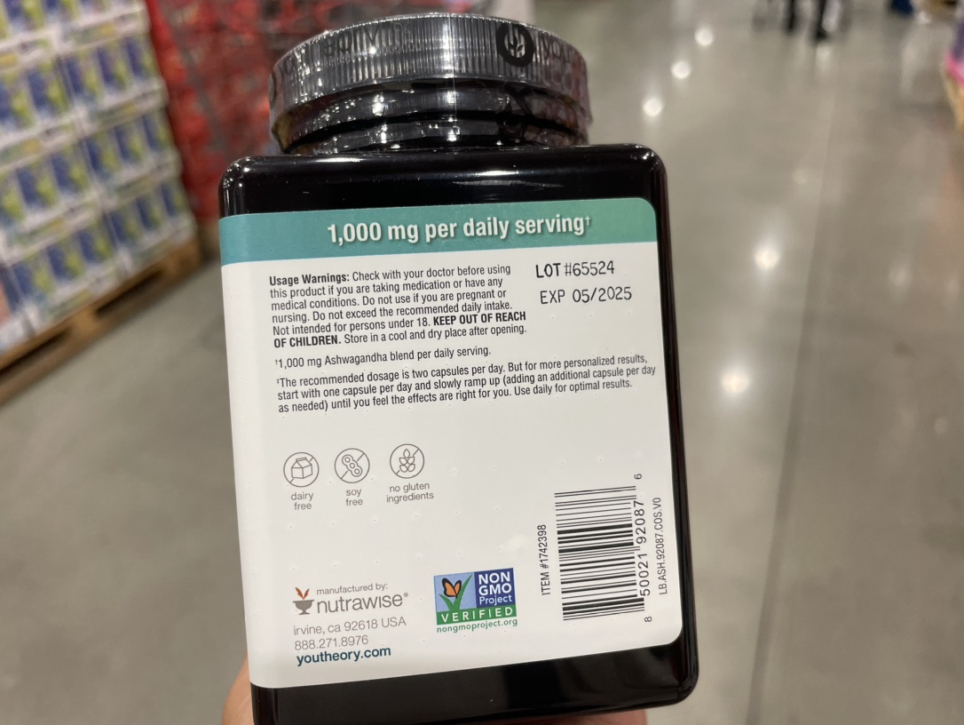 到手价219元/瓶!Youtheory ashwagandha 有机印度人参 180粒 对抗压力以及疲倦 美国代购,无中文标签,介意慎拍