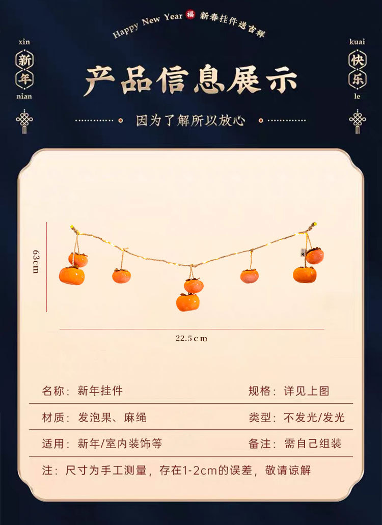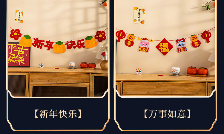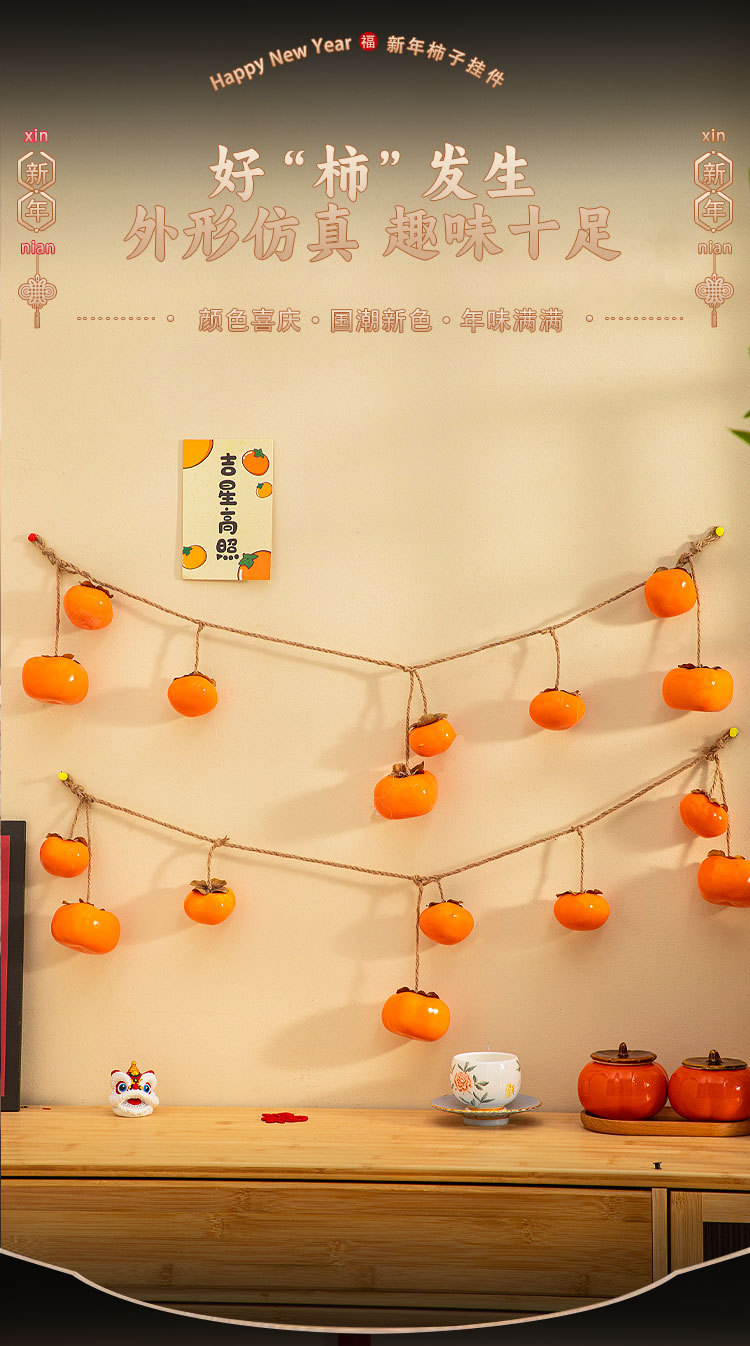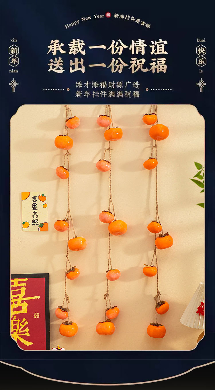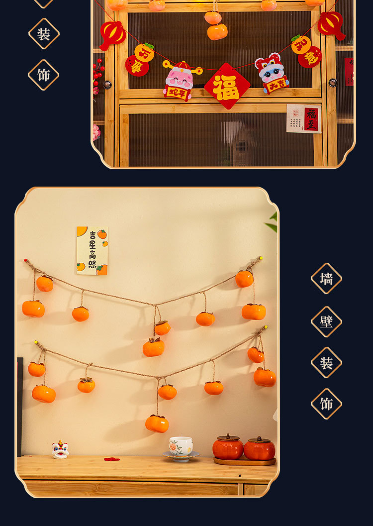 【柿柿如意,新年大吉!】2025蛇年新年装饰 元旦教室挂件 幼儿园班级拉旗 场景布置氛围挂饰-QQ