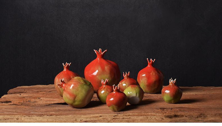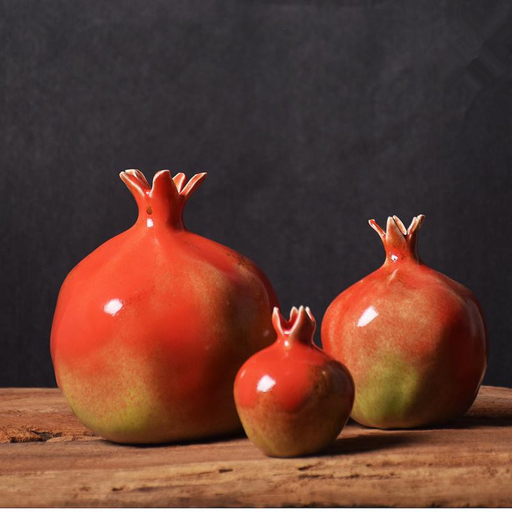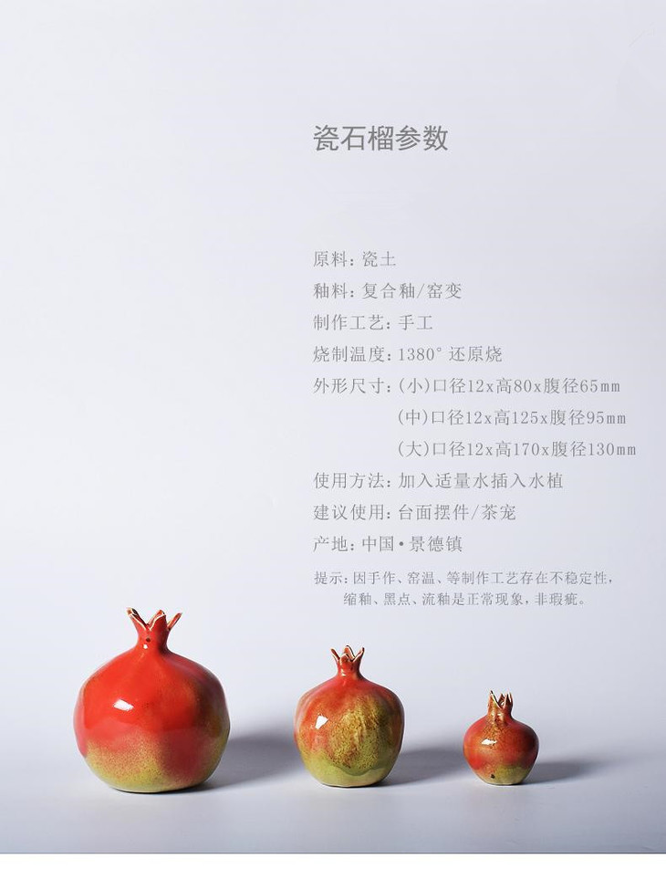 「景德镇陶瓷石榴摆件」水果装饰 多子寓意陶瓷饰品 台面小花器