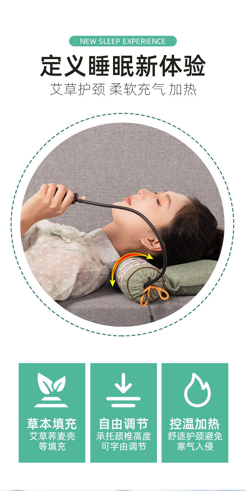 星罗低压电加热充气调节艾枕艾填充气囊调节加热颈椎枕头枕套