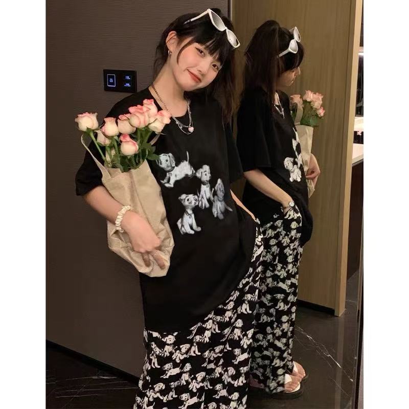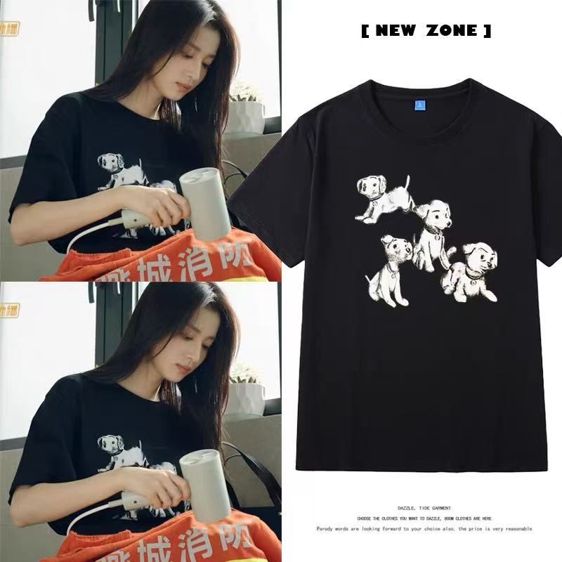 8.11秒杀-➡️黑色卡通狗狗女款T恤-喜出