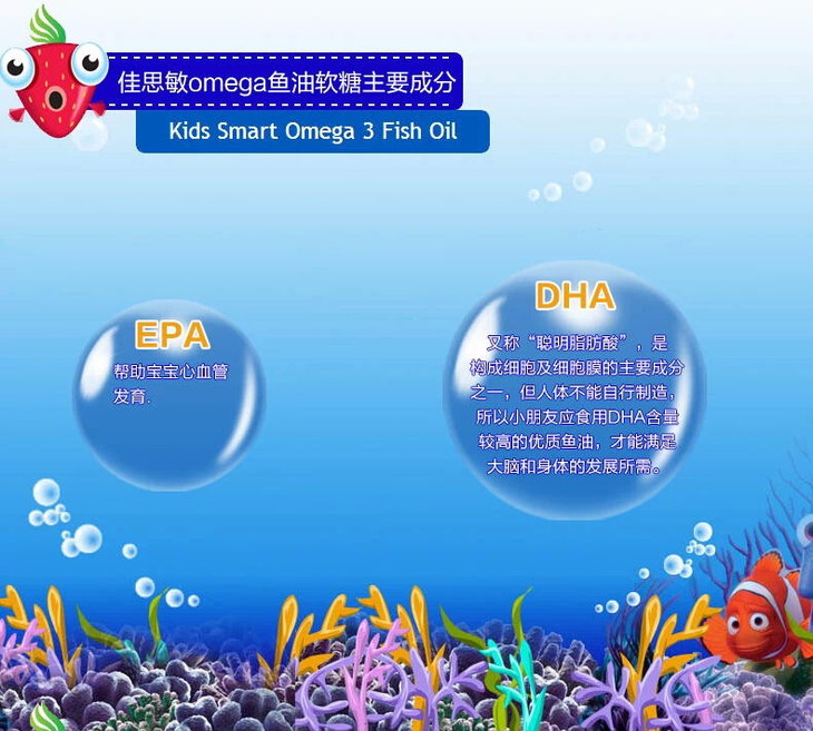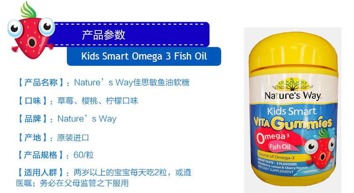 澳洲Nature's Way佳思敏儿童鱼油DHA水果软糖60粒OMEGA3