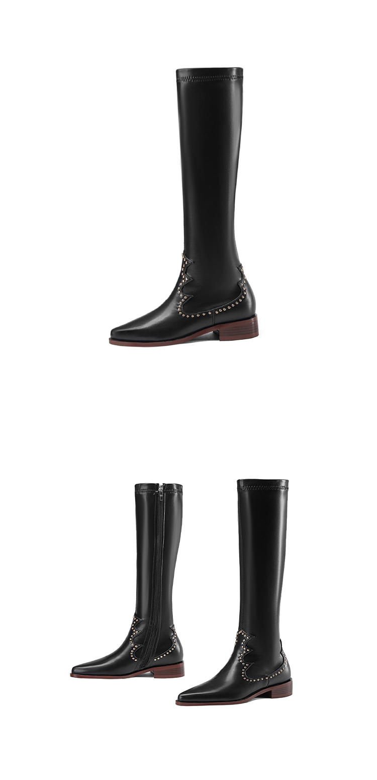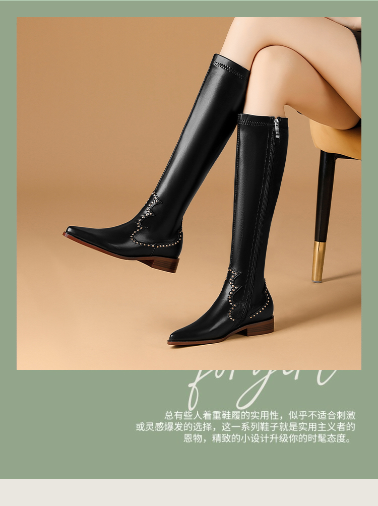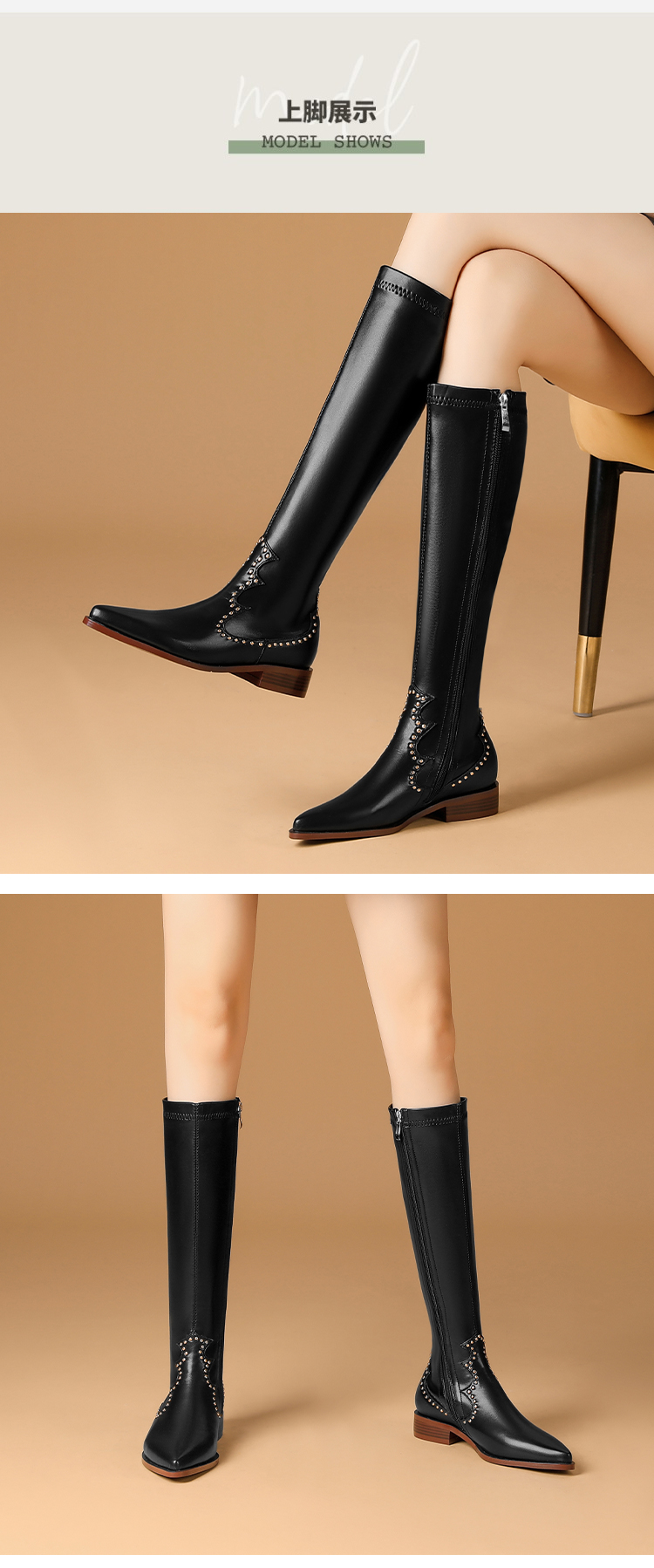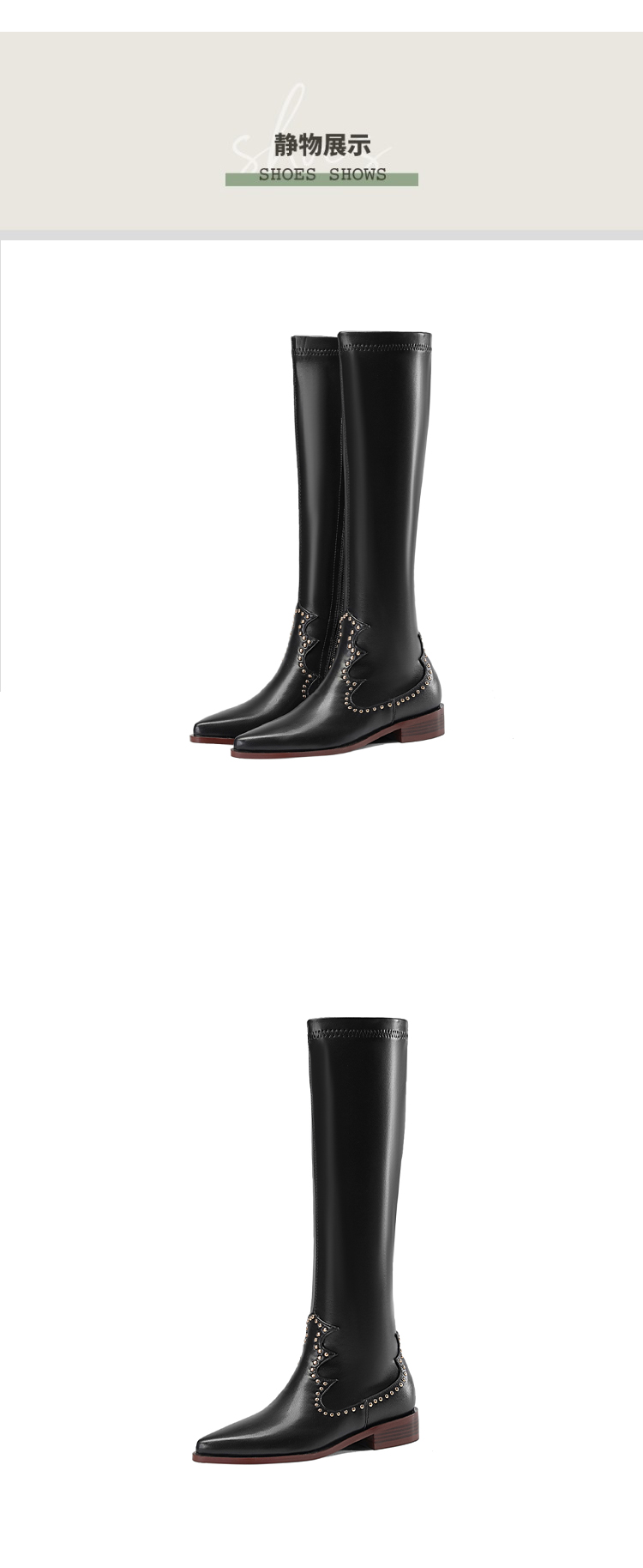 粗跟高筒靴尖头高跟女靴侧拉链不过膝长靴秋冬款时尚单靴黑色靴子 JZX122-241