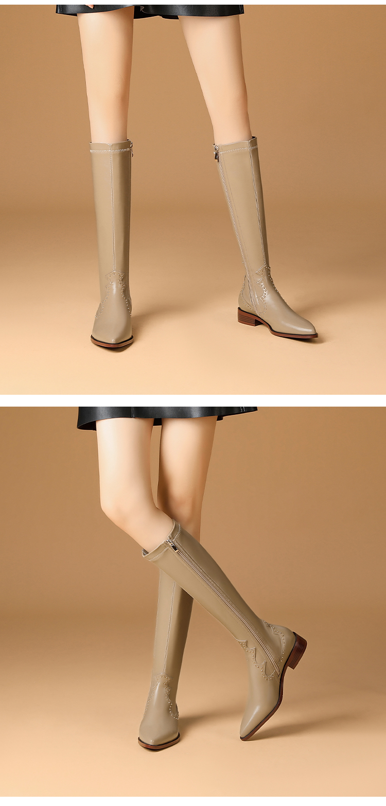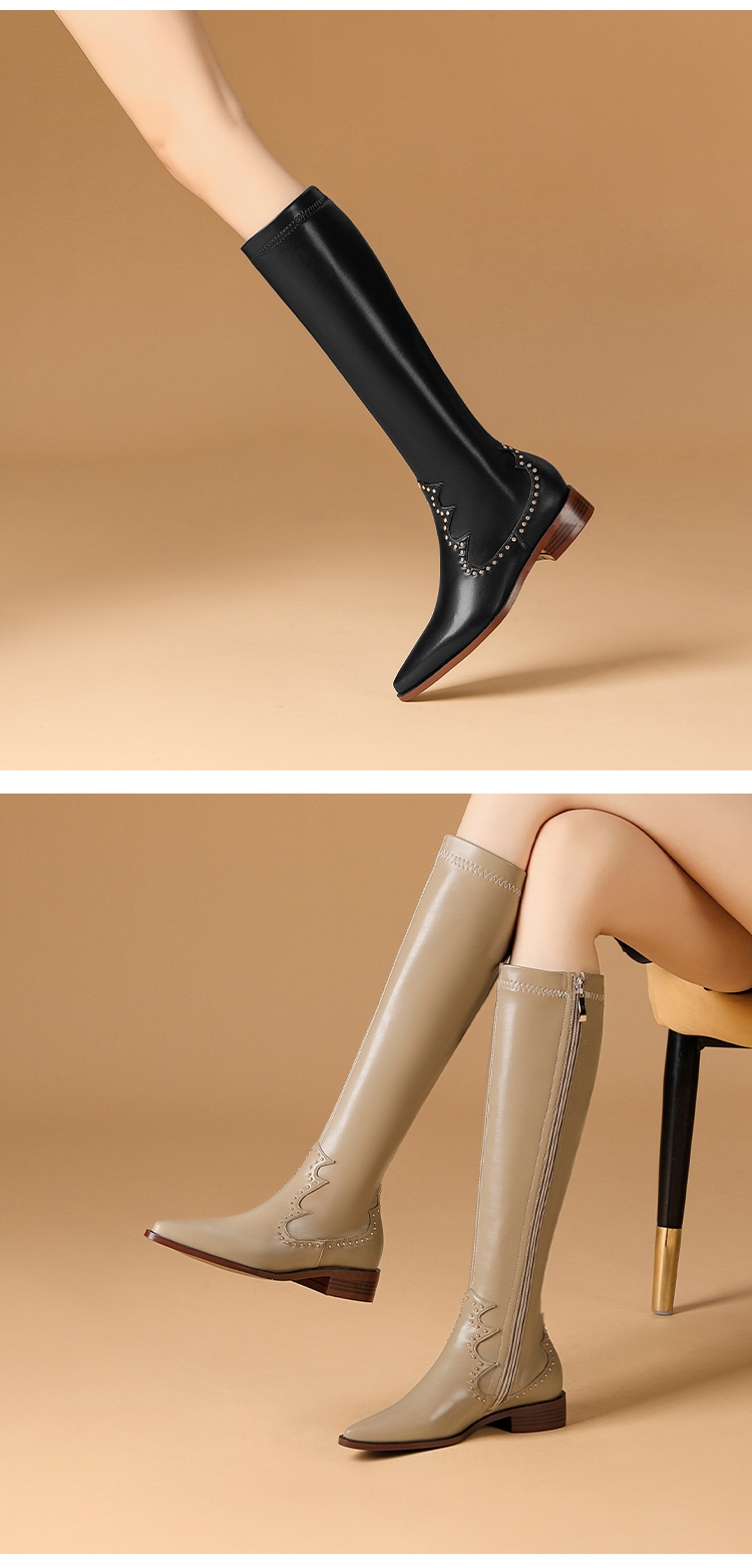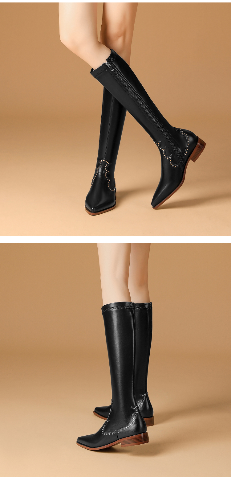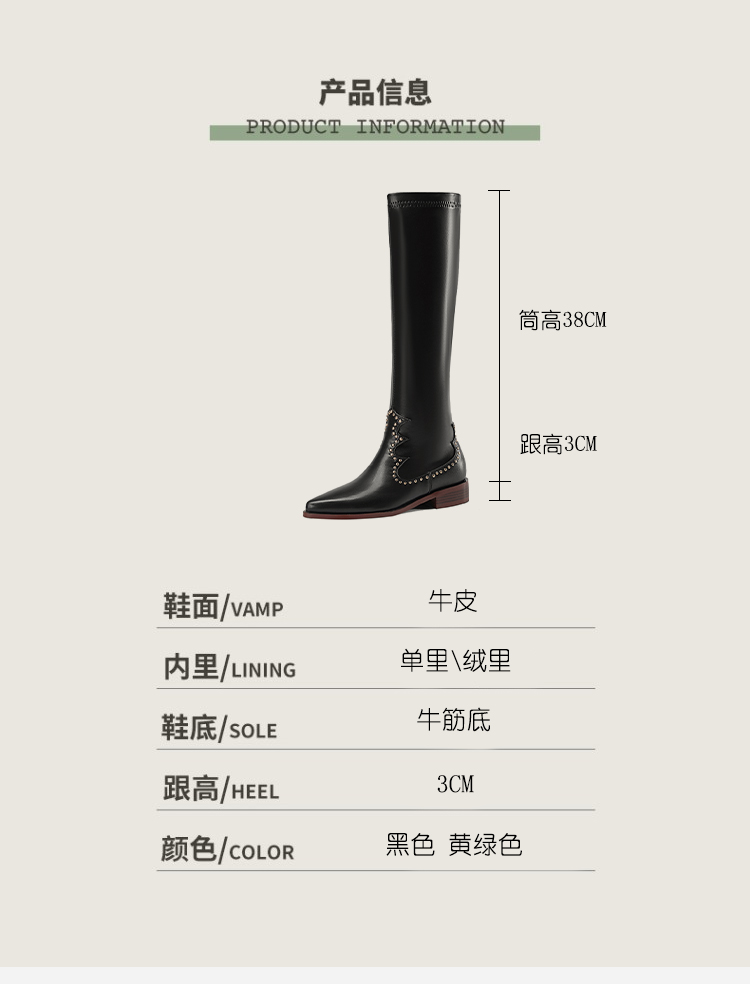 粗跟高筒靴尖头高跟女靴侧拉链不过膝长靴秋冬款时尚单靴黑色靴子 JZX122-241