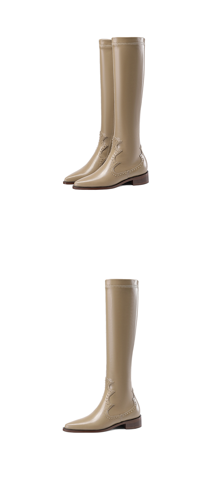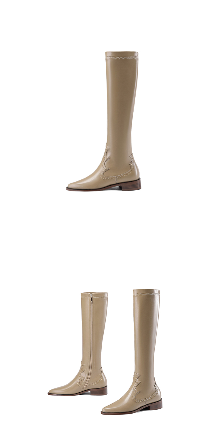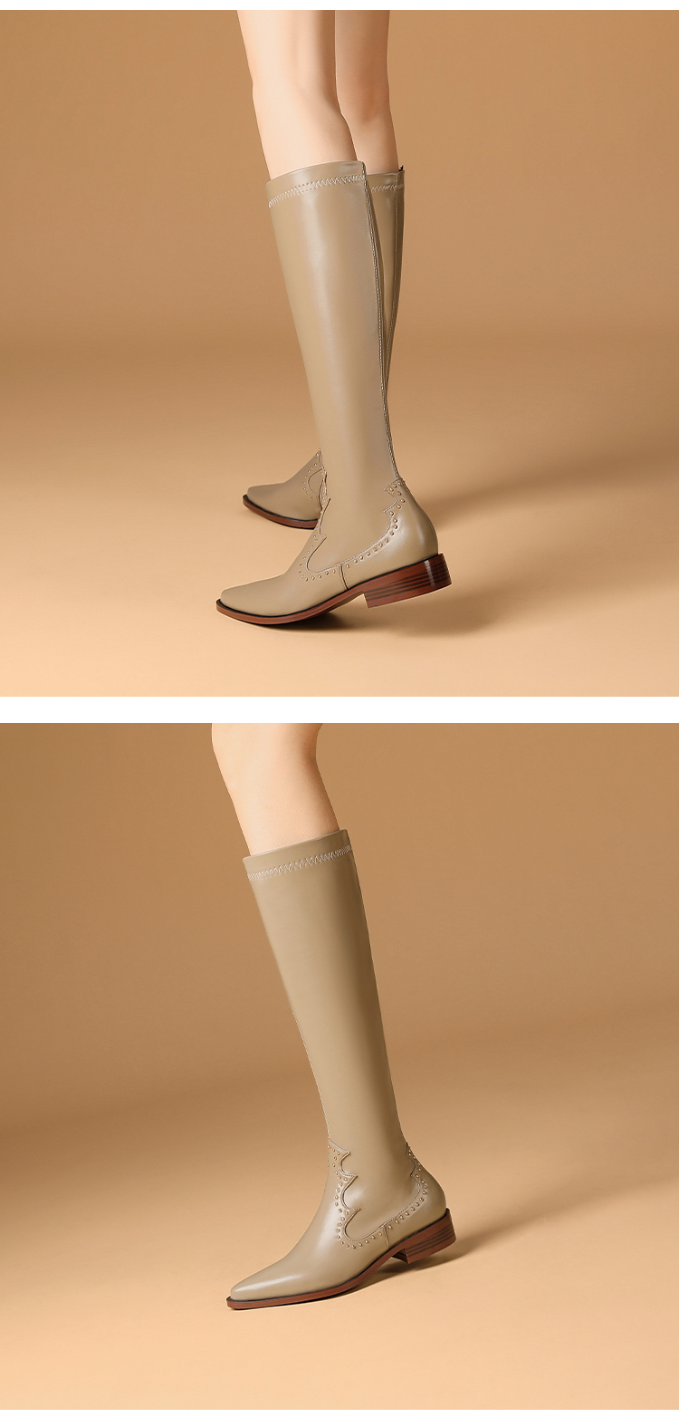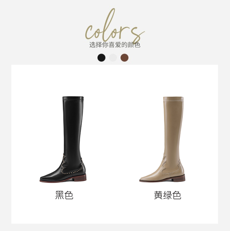 粗跟高筒靴尖头高跟女靴侧拉链不过膝长靴秋冬款时尚单靴黑色靴子 JZX122-241