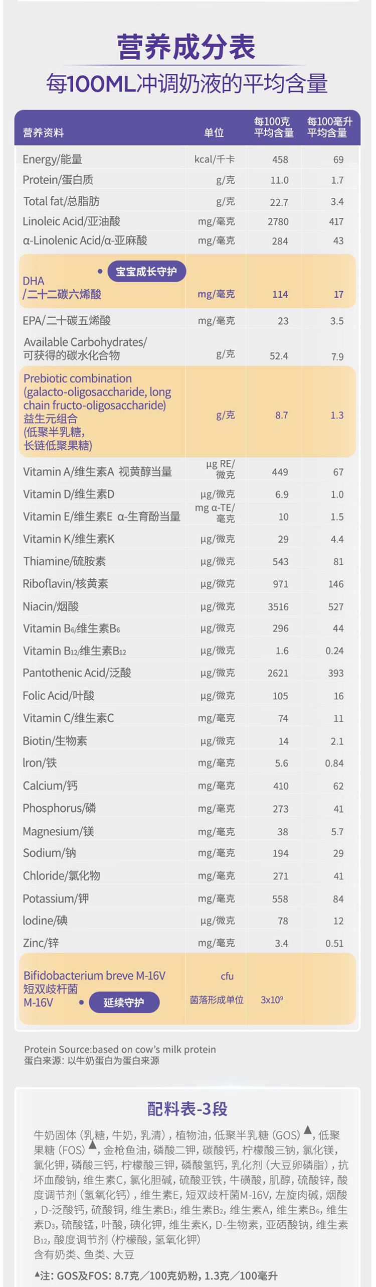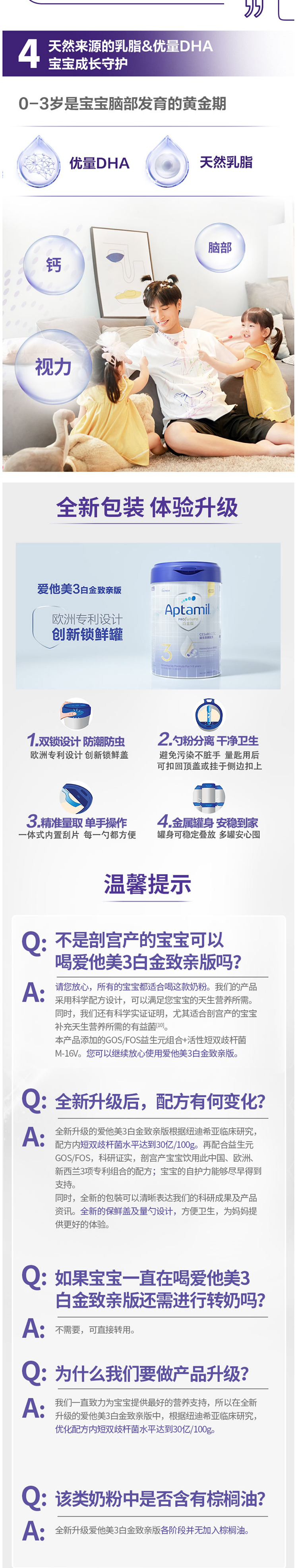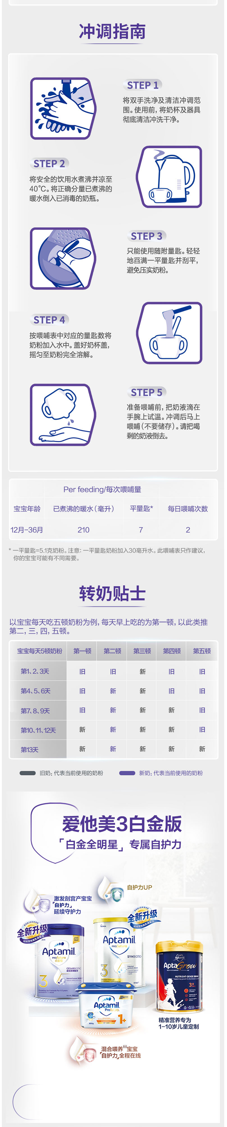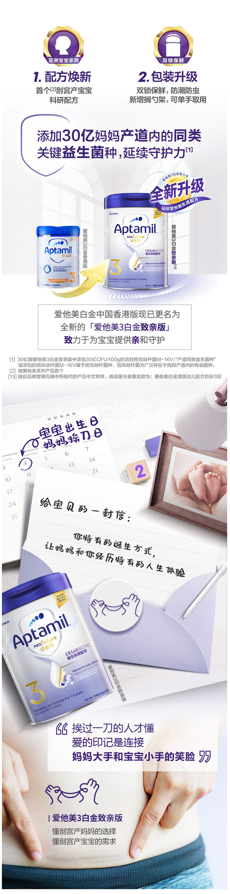 港版爱他美白金装婴幼儿奶粉3段 900g