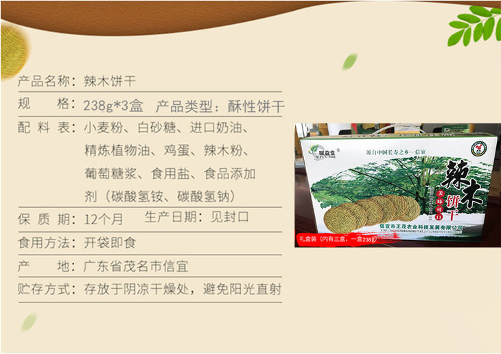 信宜市特产 赋益堂 辣木饼干礼盒装 238g*3盒