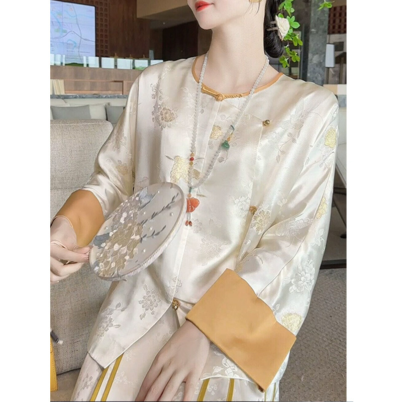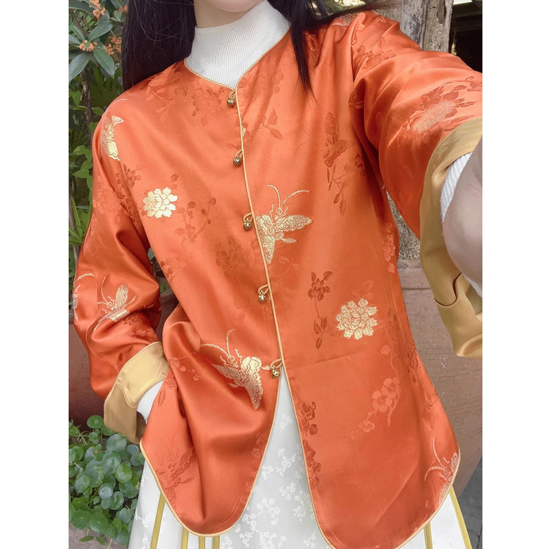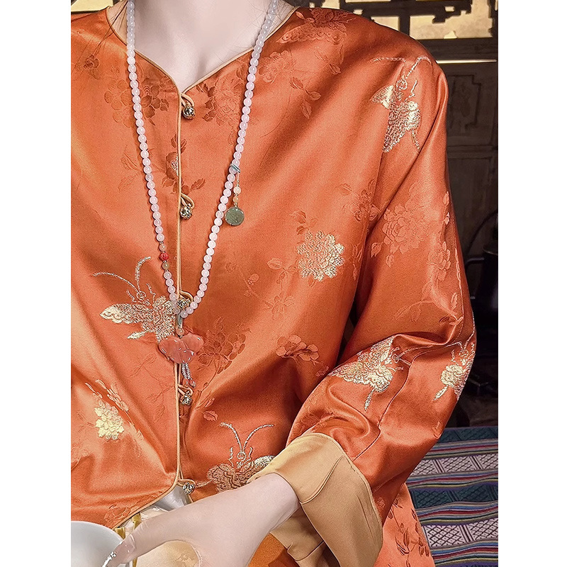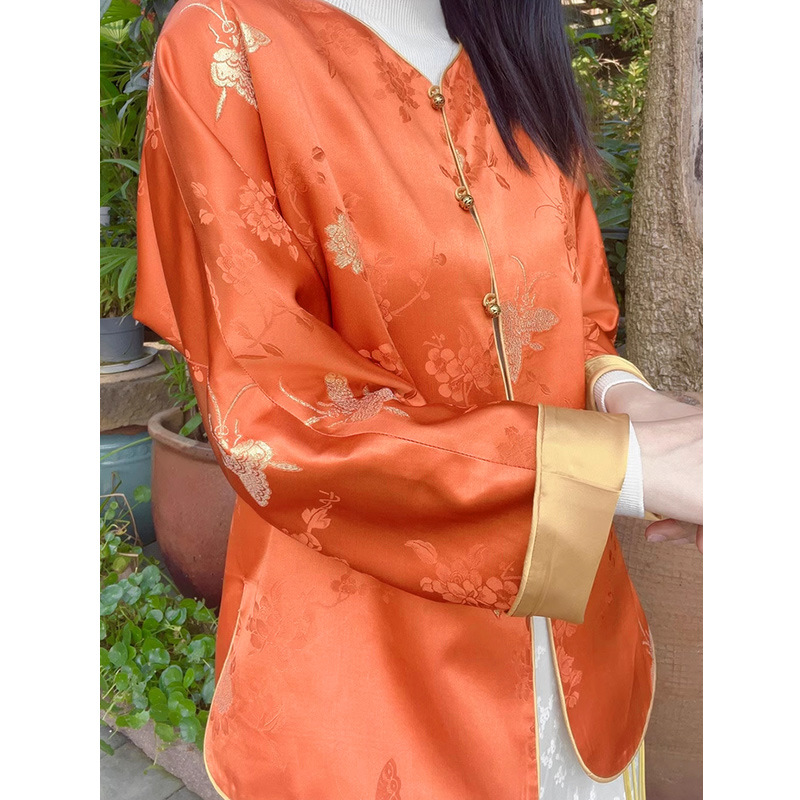 丁摩 【24姆米重磅真丝】100%桑蚕丝 金蝶恋花新中式真丝刺绣国风外套女F5101
