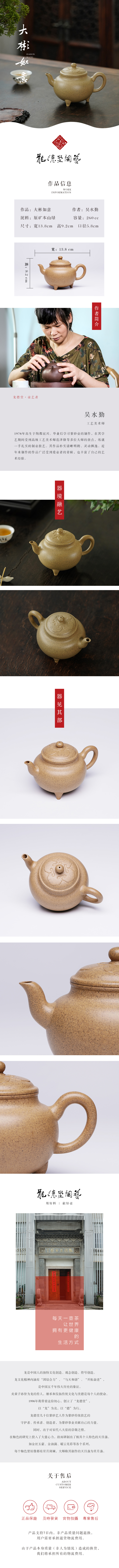 龙德堂陶艺 吴水勤制 《大彬如意》原矿本山绿 260cc 库存请咨询客服