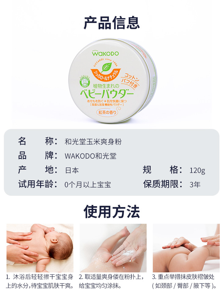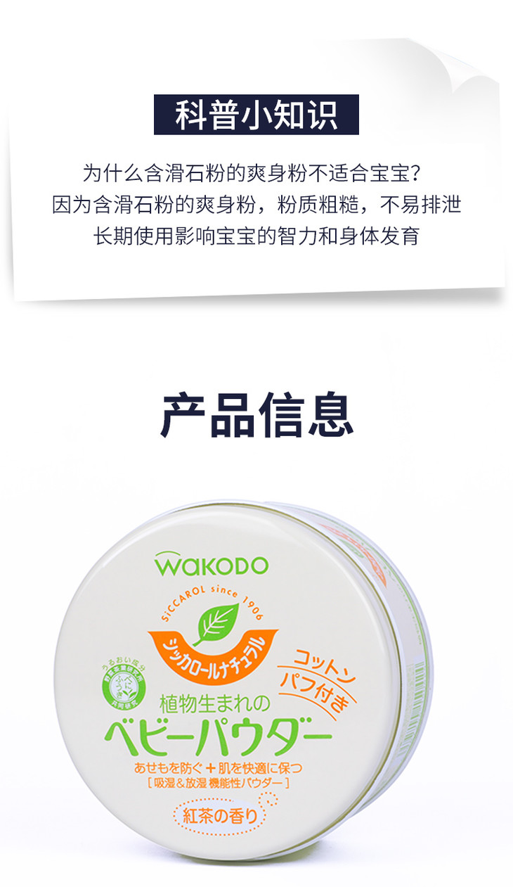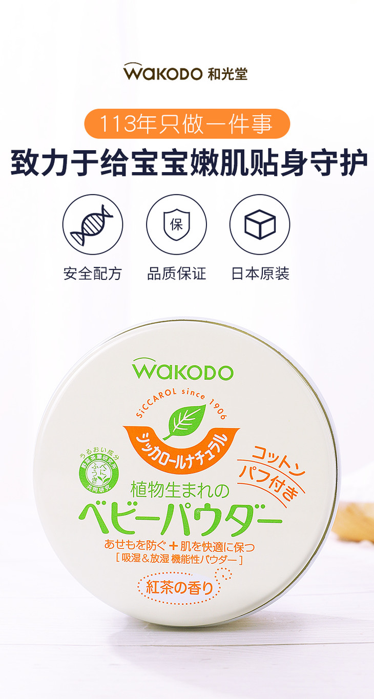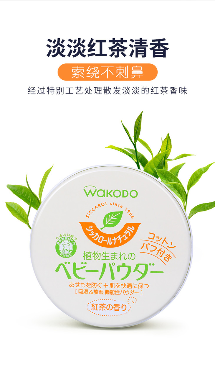 【门店直发】和光堂 自然茶香爽身粉 120克/罐