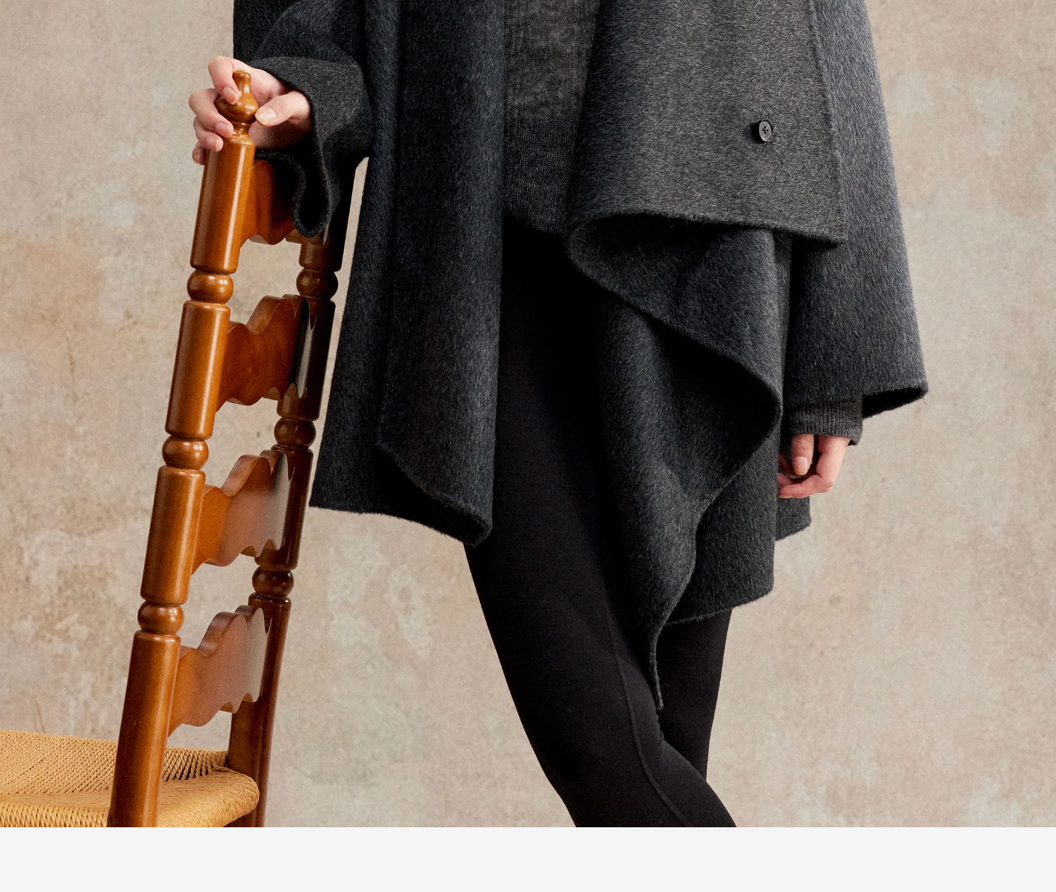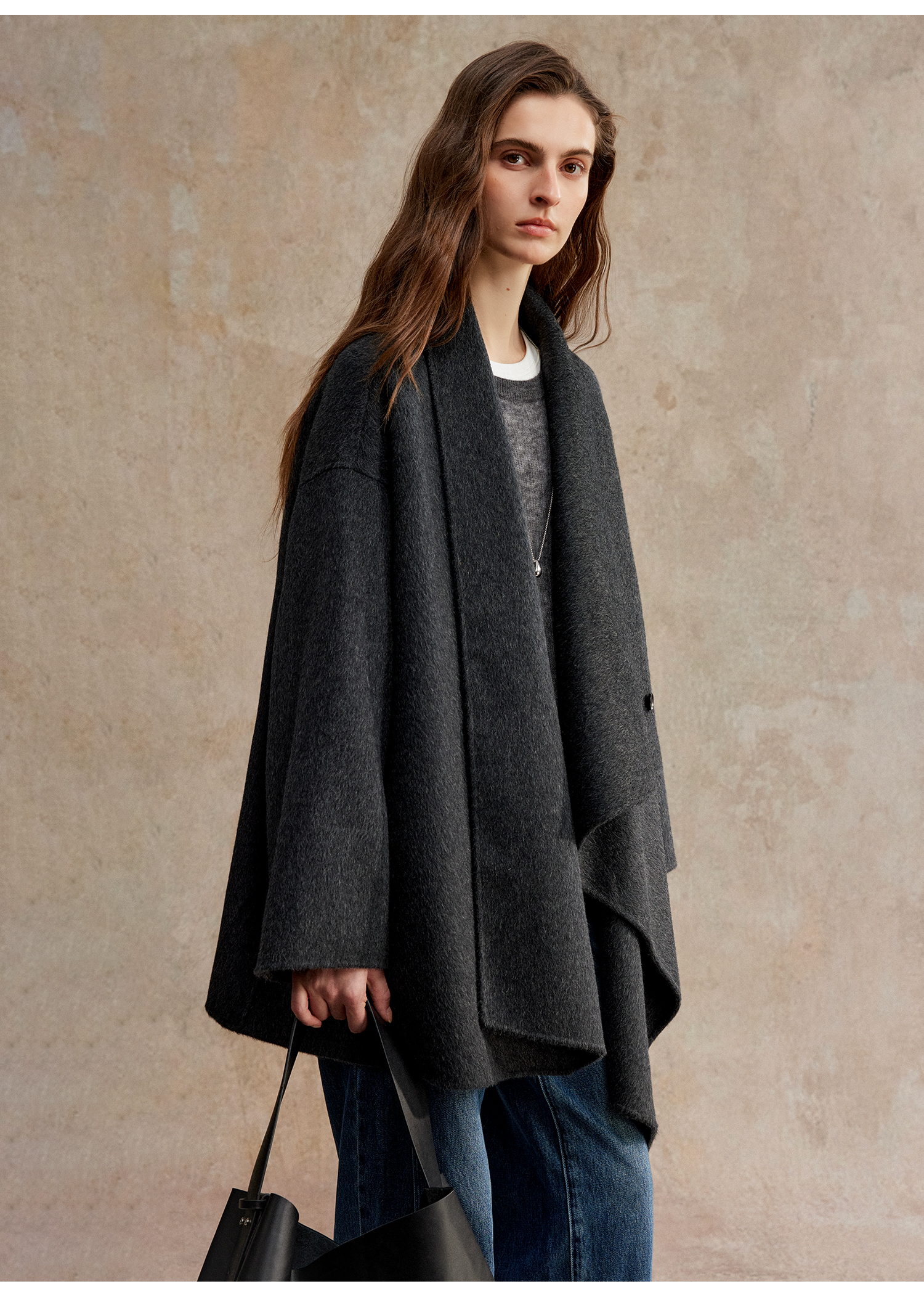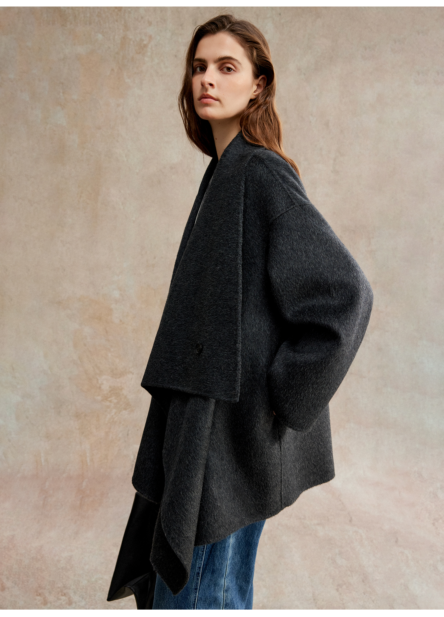 全羊毛围裹式不对称领子知性学术风气质宽松双面尼大衣DY2504016